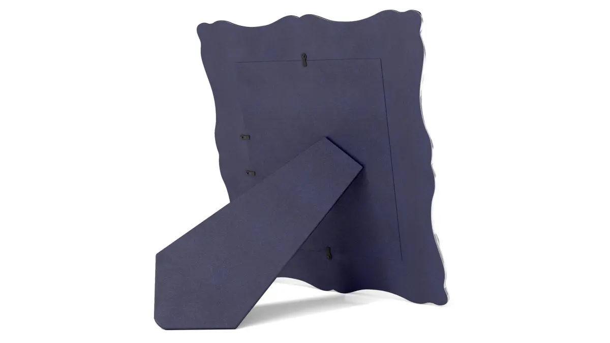 Picture Frame: Display your favorite memories with this elegant picture frame. The frame is made of silver-toned metal and has a classic rectangular shape. It measures 8 inches by 10 inches, making it suitable for standard-sized photos. The packaging is a cardboard box with a foam insert to protect the frame during transportation. The label on the packaging includes the product name, size, and care instructions.