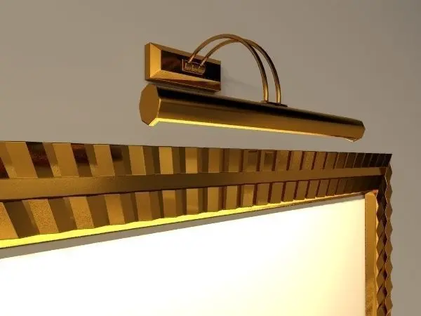 Brass picture frame with lighting fixture.My first upload, brought to you free of charge.Brass is Arch&Design material. Fixture light included.Real world scale in cm.Max file in 2013 format. Both FBX and 3DS included.