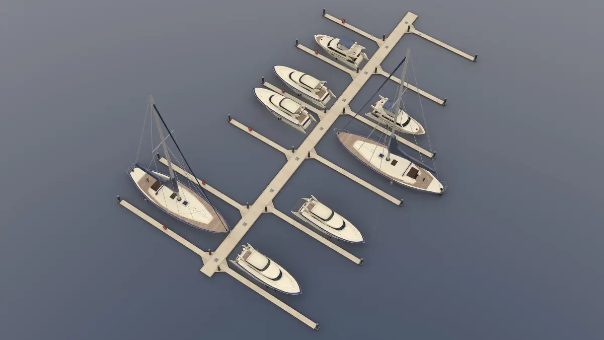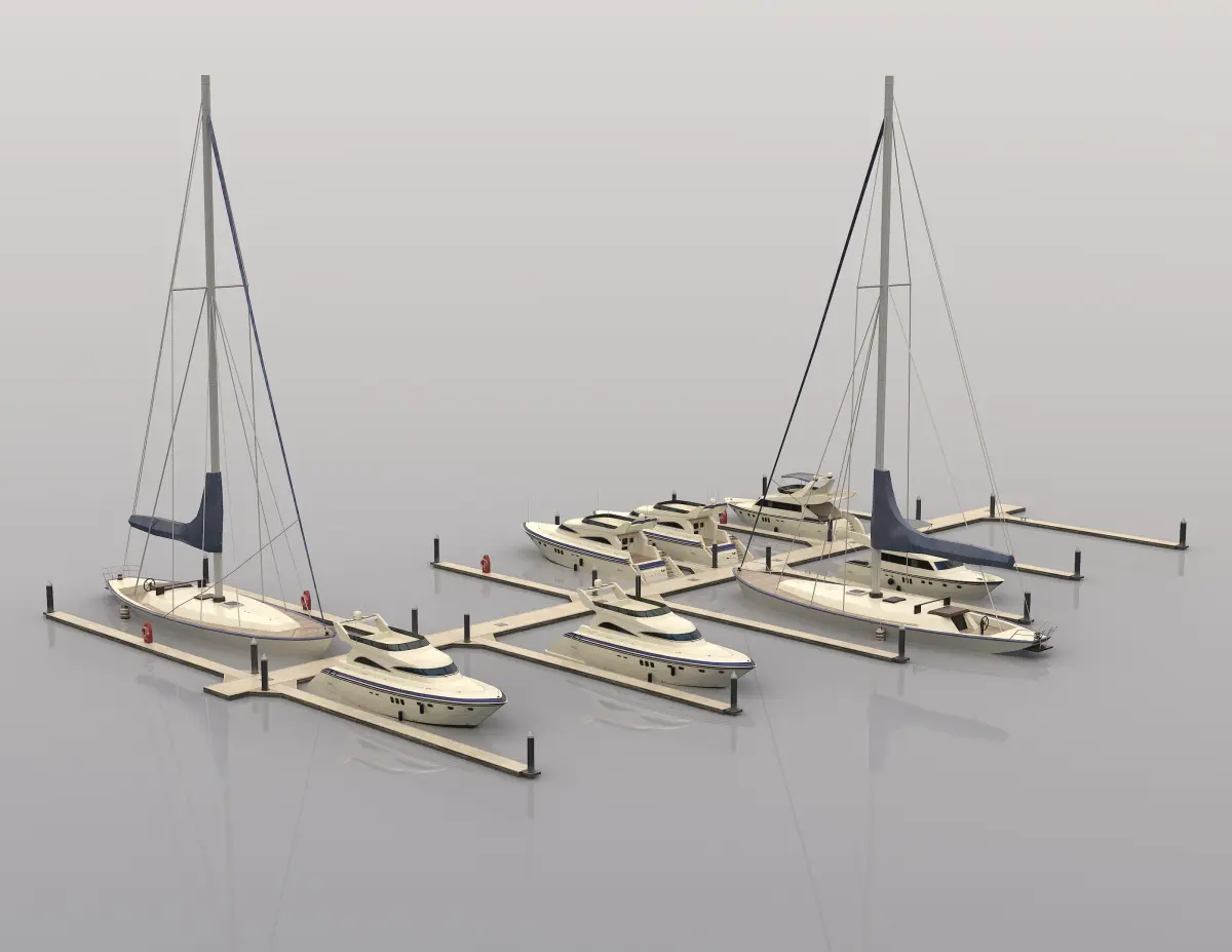 Photorealistic Lowpoly 3D model Set of Piers and Yachts