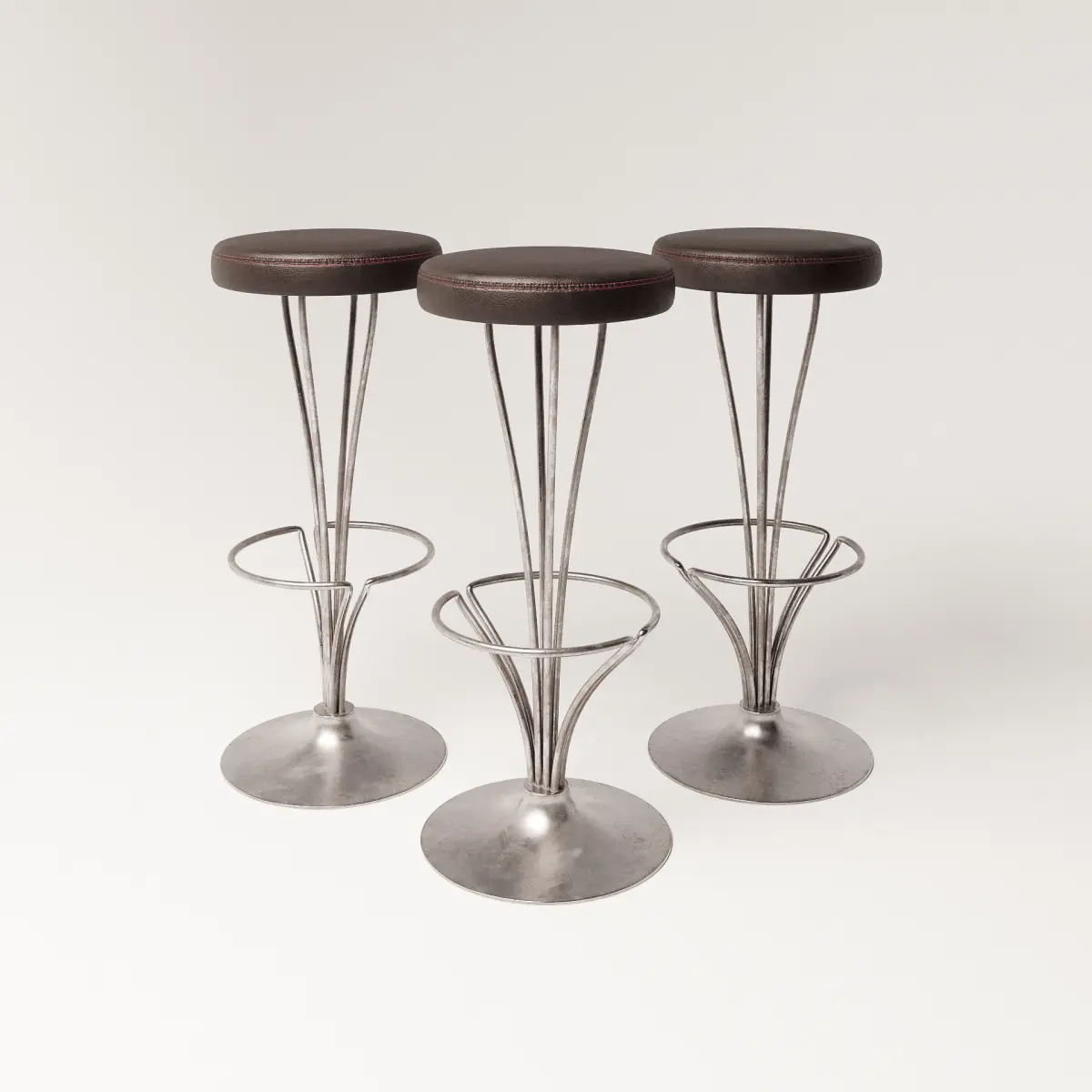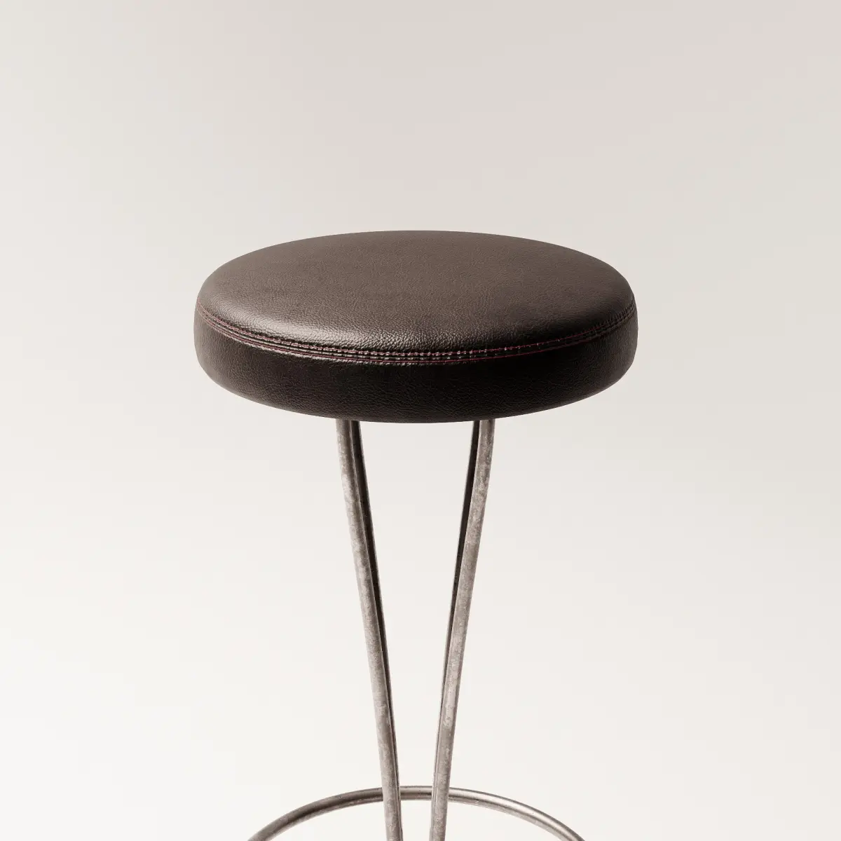 Piet Hein for Fritz Hansen, barstool, metal, leather, Denmark, 1970s
