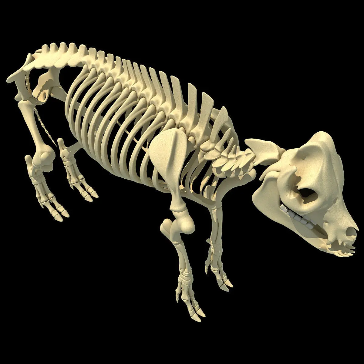 High detailed 3d model of pig skeleton.Textures are high-resolution jpeg images.Previews were rendered with V-Ray.