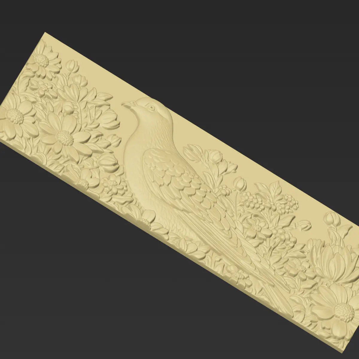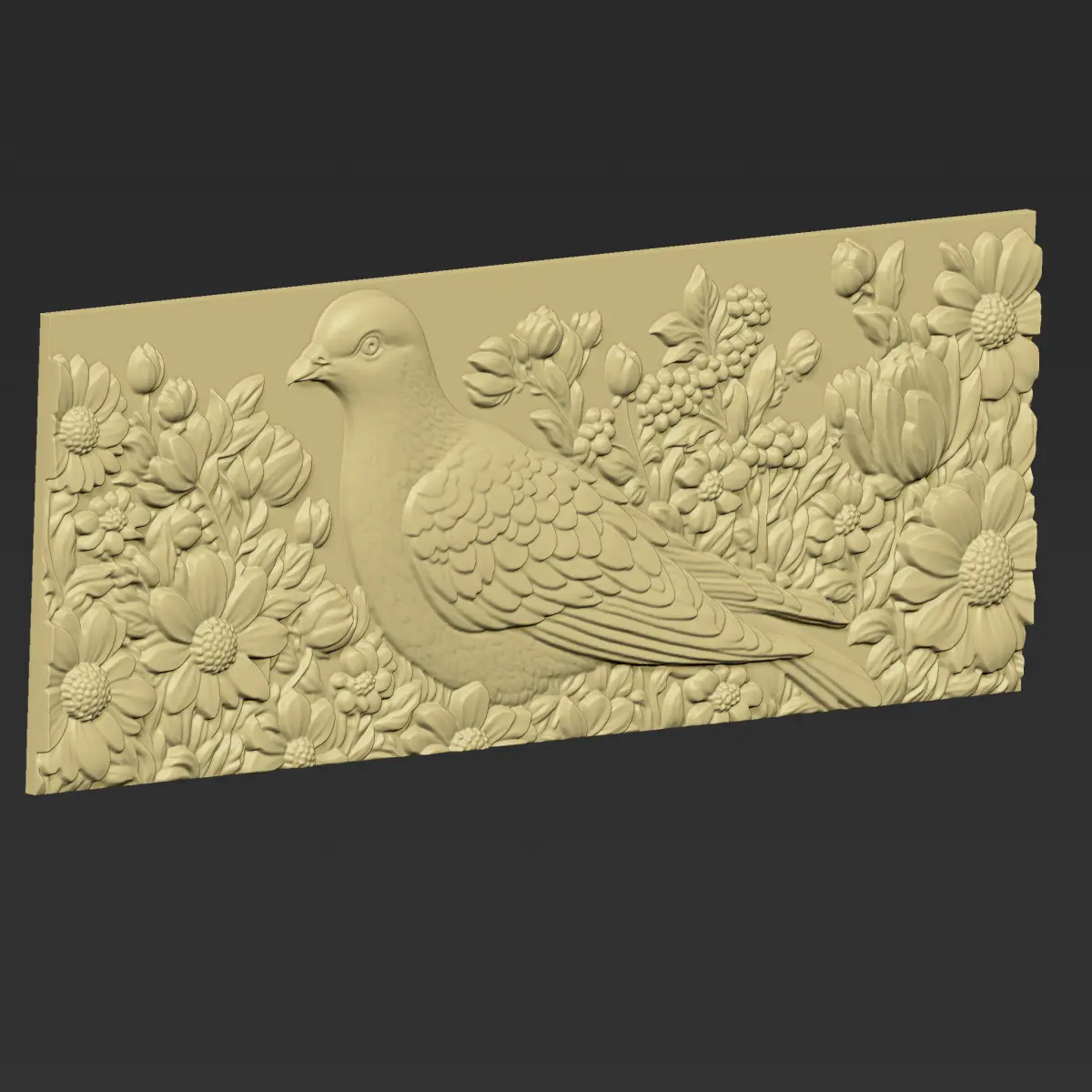 3d model of bas-relief of a pigeon with flowers background ready for CNC Router Carving or 3d printer.OBJ,STL format.Note:All the models are not for resale,it is illegal!