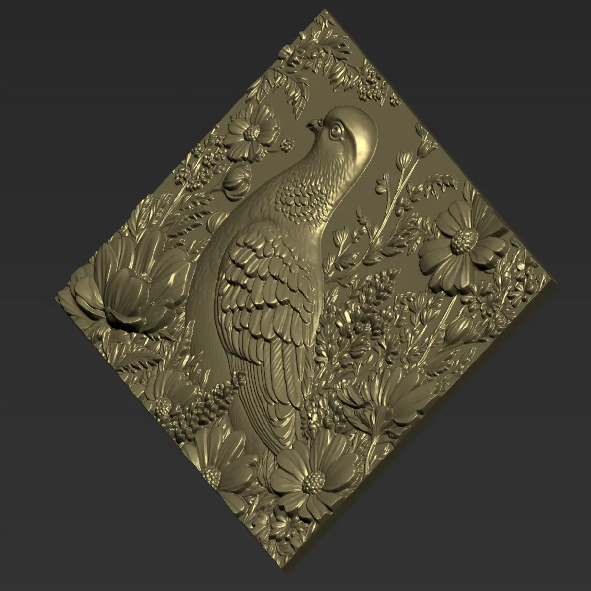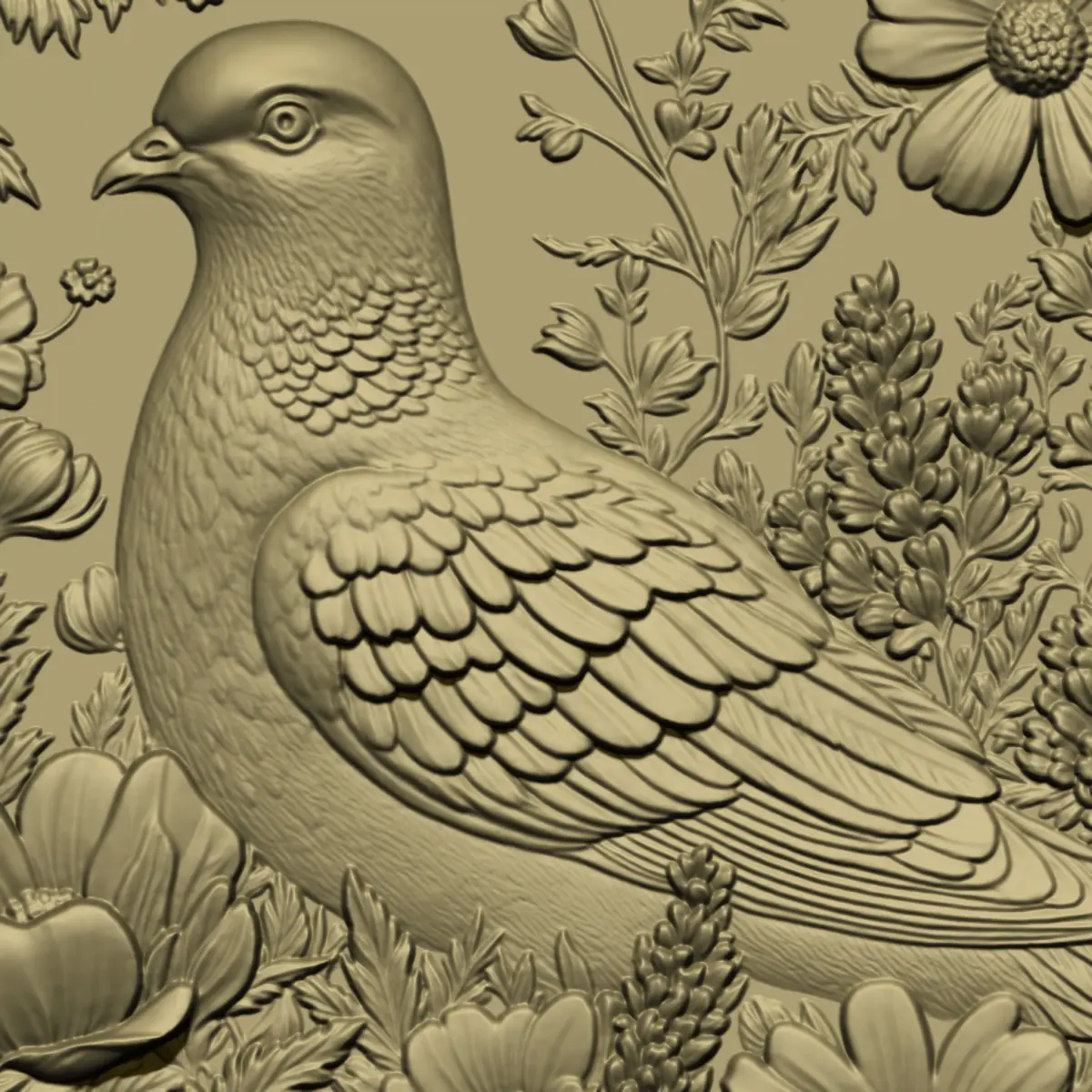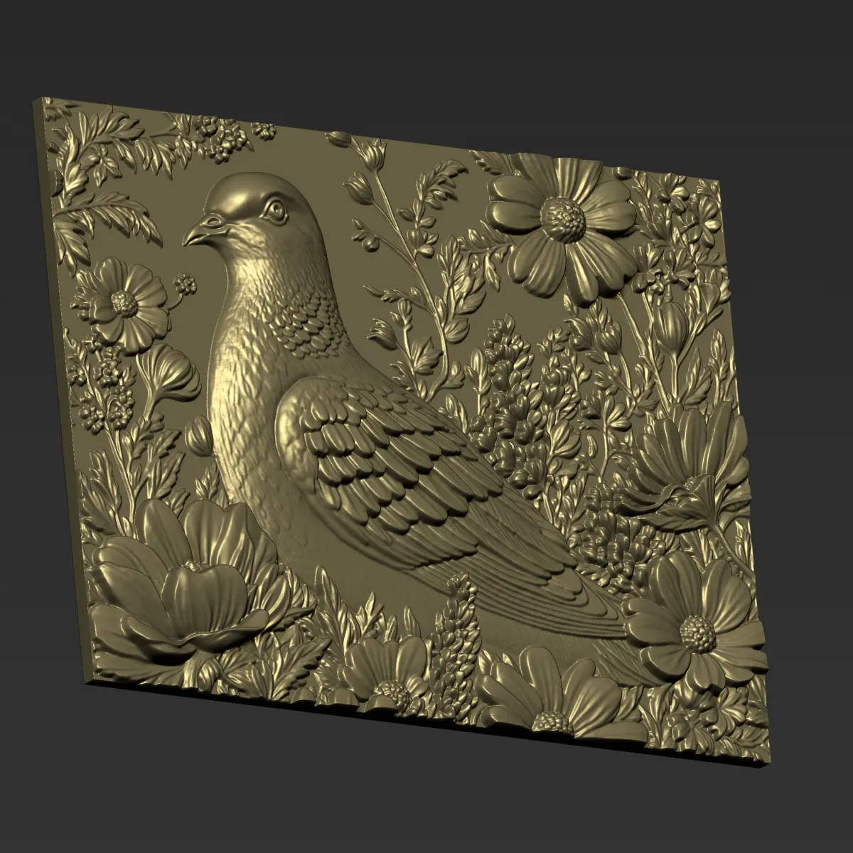 3d model of bas-relief of a pigeon with flowers background ready for CNC Router Carving or 3d printer.OBJ,STL format.Note:All the models are not for resale,it is illegal!