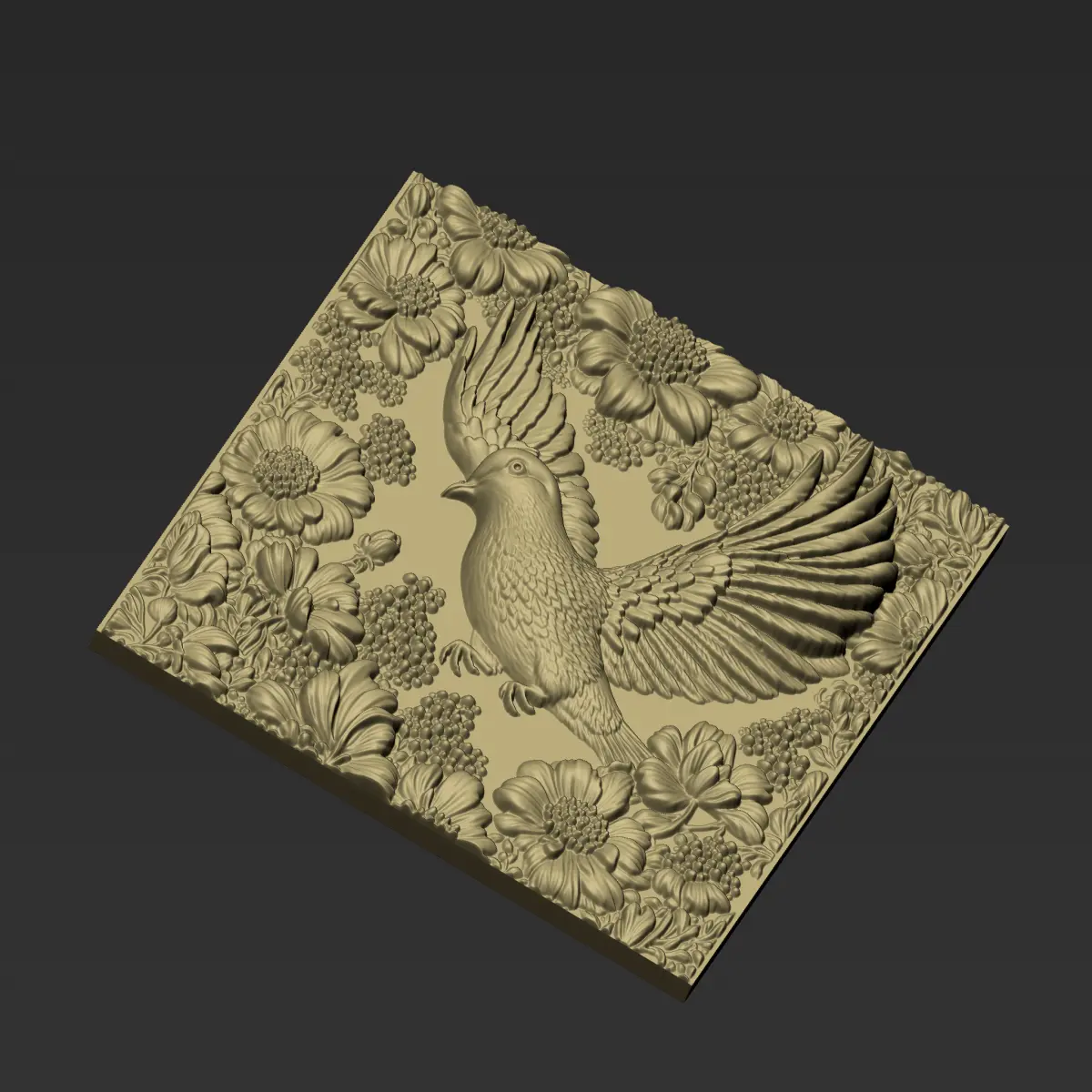 3d model of bas-relief of a pigeon with flowers background ready for CNC Router Carving or 3d printer.OBJ,STL format.Note:All the models are not for resale,it is illegal!