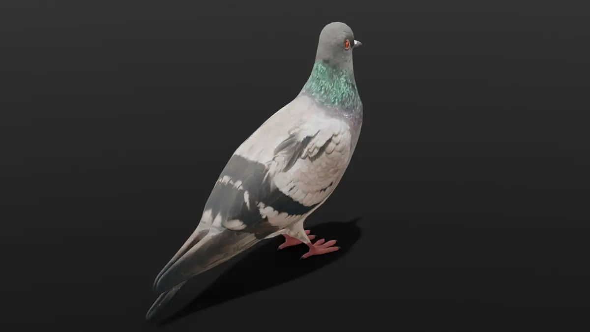 Texturing and MaterialsTextures: The model employs high-resolution textures to enhance visual detail and realism. These textures accurately depict the coloration, pattern, and fine details of the pigeon’s feathers, beak, and eyes, contributing to a lifelike appearance.Materials: Various materials are utilized to define the surface properties of the pigeon. These materials simulate realistic attributes such as the reflective quality of the eyes, the matte texture of feathers, and the subtle shading on the beak and feet, further enhancing the model's realism.Animation and RiggingRigged: The model is fully rigged with an internal skeleton, allowing for realistic movement and posing. This rigging system includes bones and joints that enable the pigeon to perform various actions such as flapping its wings, walking, and pecking.Animated: The model includes pre-defined animations, demonstrating natural pigeon behaviors and movements. These animations are designed to be fluid and convincing, showcasing actions like flying, landing, and cooing. The animations add dynamic interaction capabilities to the model, making it suitable for diverse digital scenes.UV MappingUV Mapped: The model is UV mapped, ensuring precise and accurate application of textures to its geometry. This technique allows the textures to align perfectly with the model’s surfaces, providing a consistent and realistic appearance. UV mapping is critical for maintaining the integrity of the visual details, especially in complex areas like feather arrangements and facial features.Usage and ApplicationsThe Animated Pigeon 3D model is versatile and applicable across various fields, including: