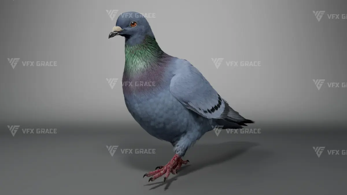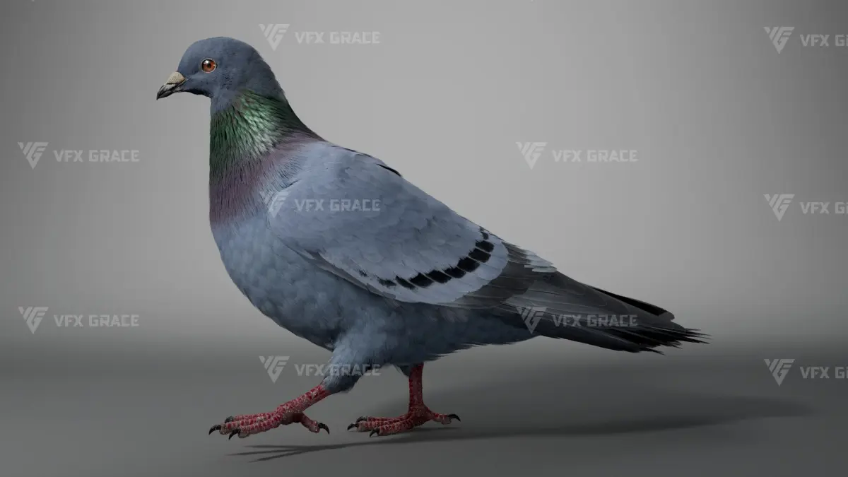 This is a high-quality pigeon model with maps, hair, rigging and three animations. The fur is created in XGen interactive with enough details, and all textures are rendered with Arnold renderer for realistic effects. The rigging is created with reference to real bones, making the animation in line with natural movements. The package includes the rigging and 3 standard animations. The model is created with Maya 2024 at real-world scale.