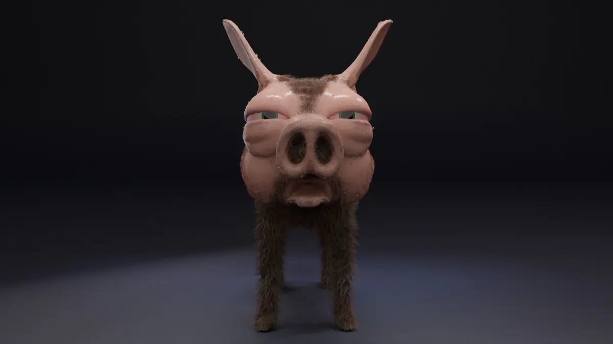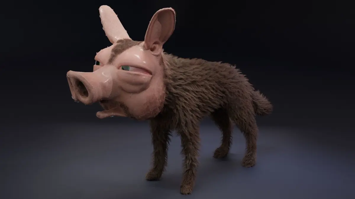 Piggy dog. Contains two files. A file with a pig dog and a file along with a simple animation. All textures - 4k. Main file - blender. Fur and water drops on face - blender particles. All textures - in ZIP file.