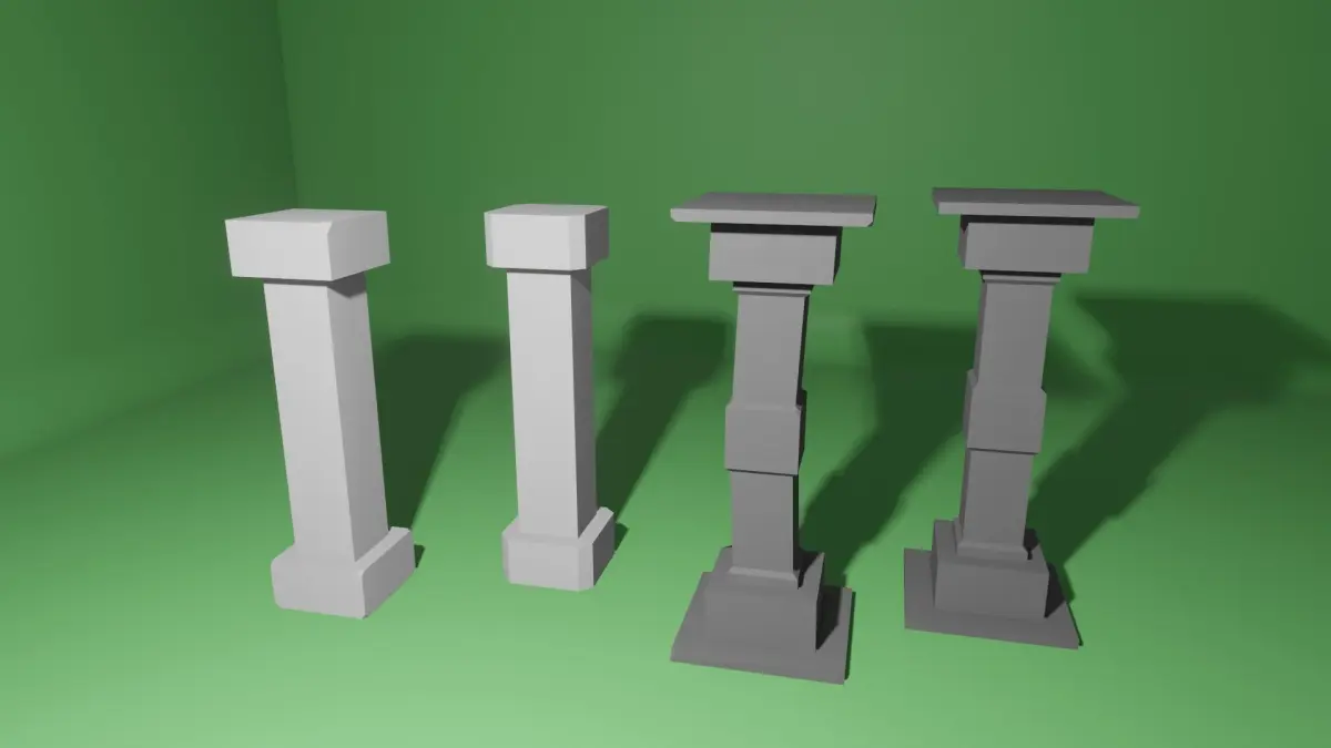pilares, modelos 3d pilares low poly, modelos 3d low polybonita arquitectura para juegos, pilares medievales.