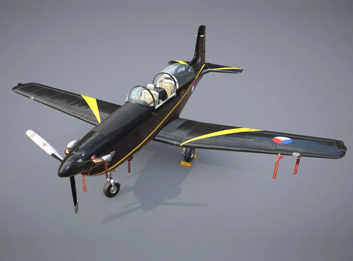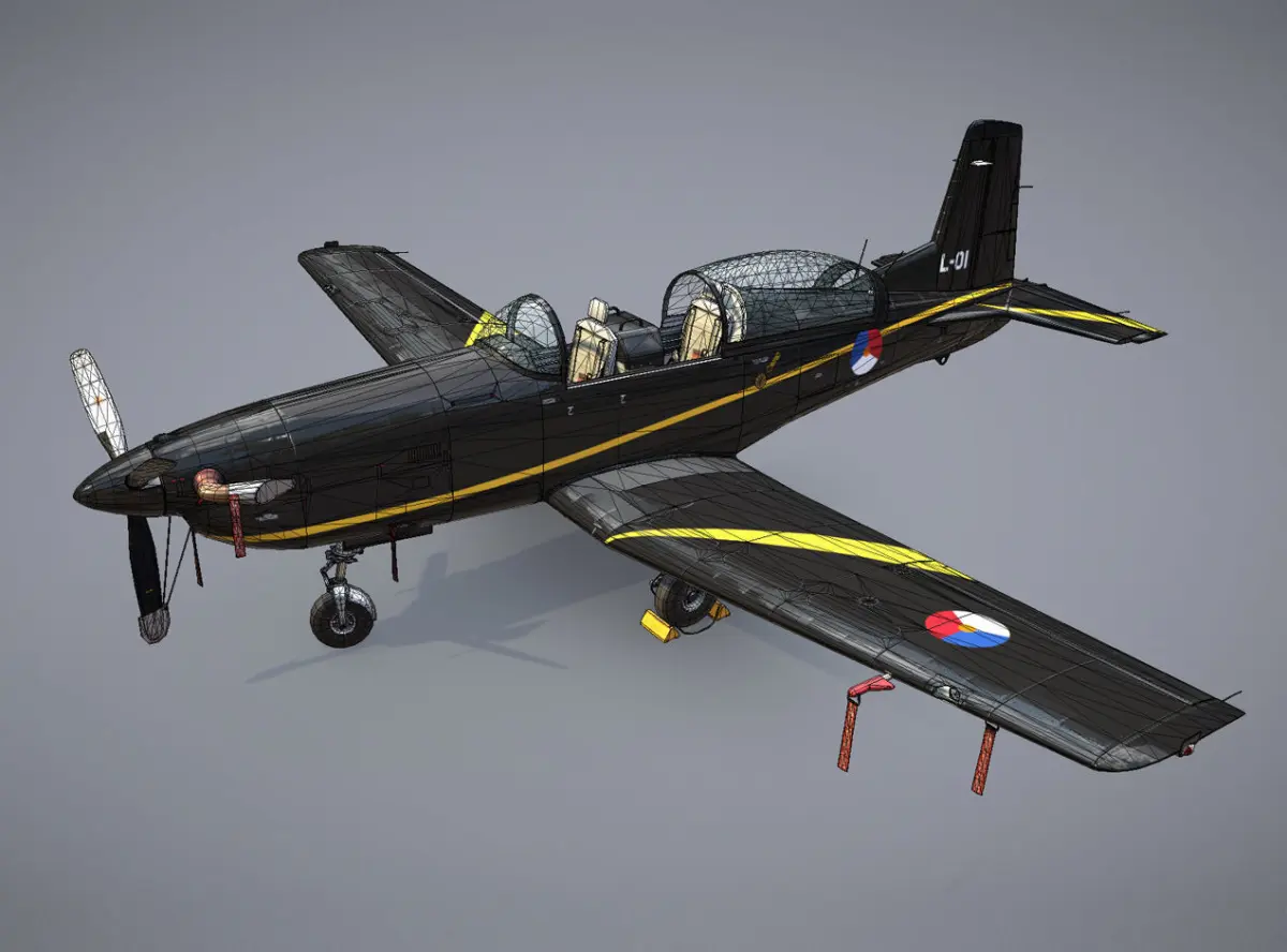 Low-poly 3D model airplane (Pilatus PC-7 Mk-I) with LODs