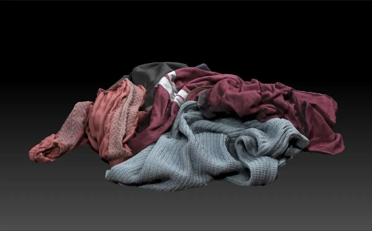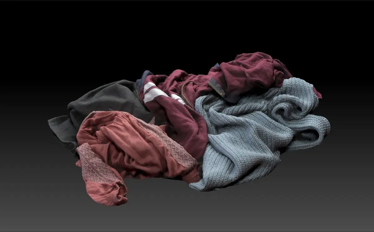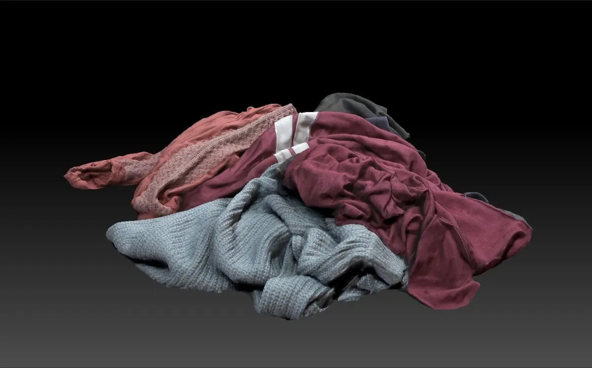 A small pile of clothes on the floor, low poly and game ready.