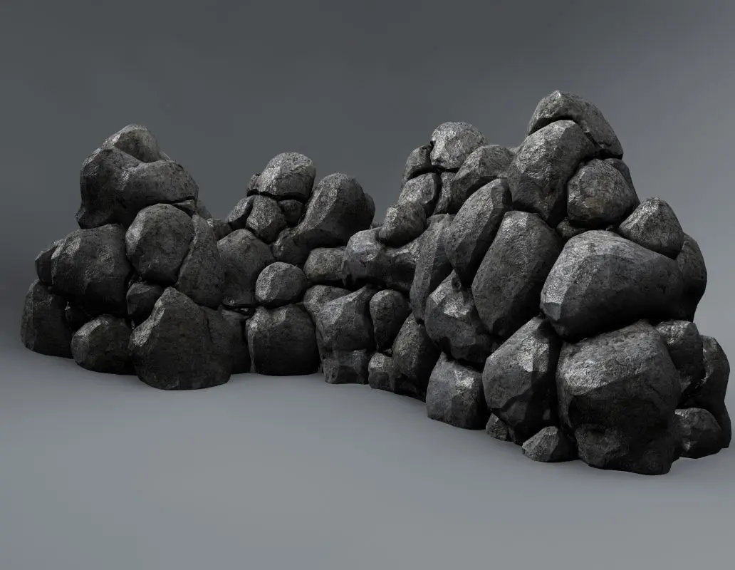 Normal mapped, high quality model of stone pile.This element can be rotated and repeated for larger stone walls, boundaries, etc.