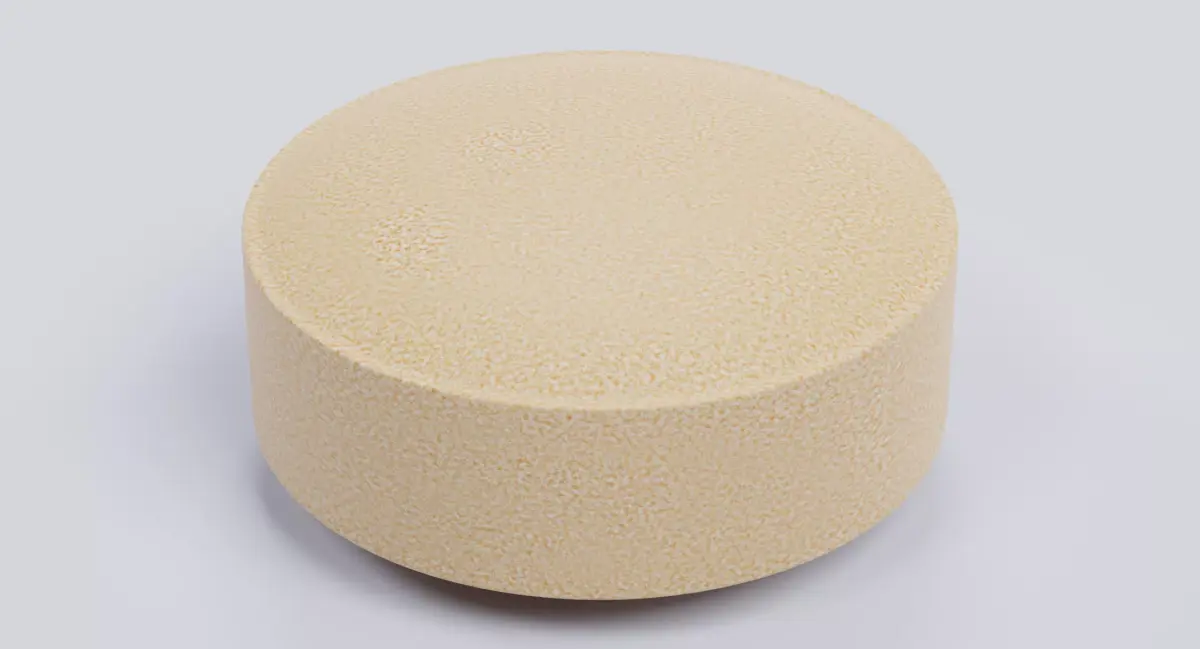 - Round tablet form with a smooth, unscored surface