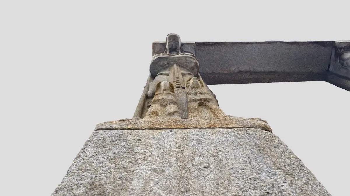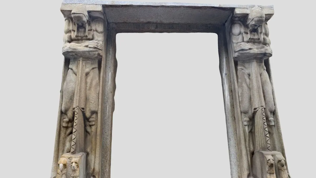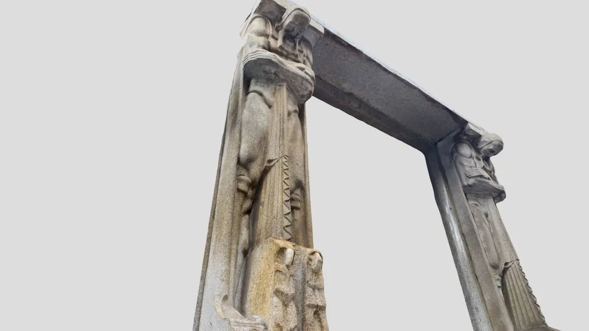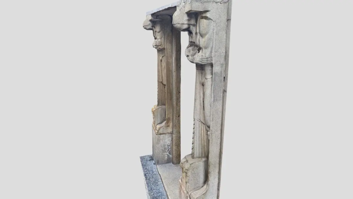 A scan of two statues of men utilised as pillars. Photogrammetry, found outside of the Prague metro.
