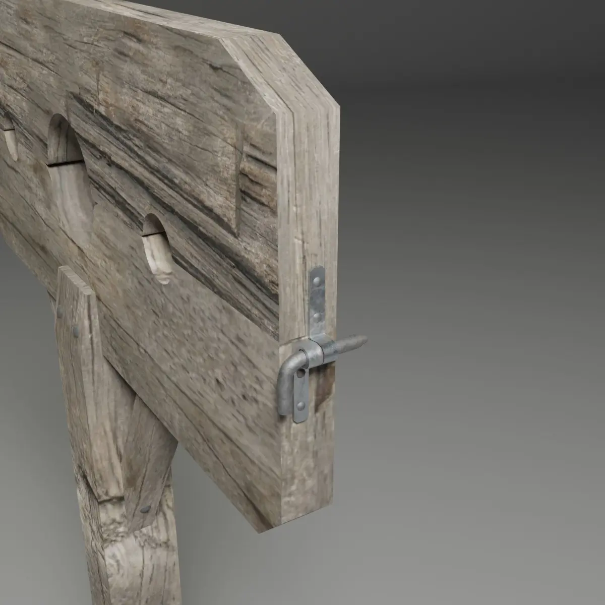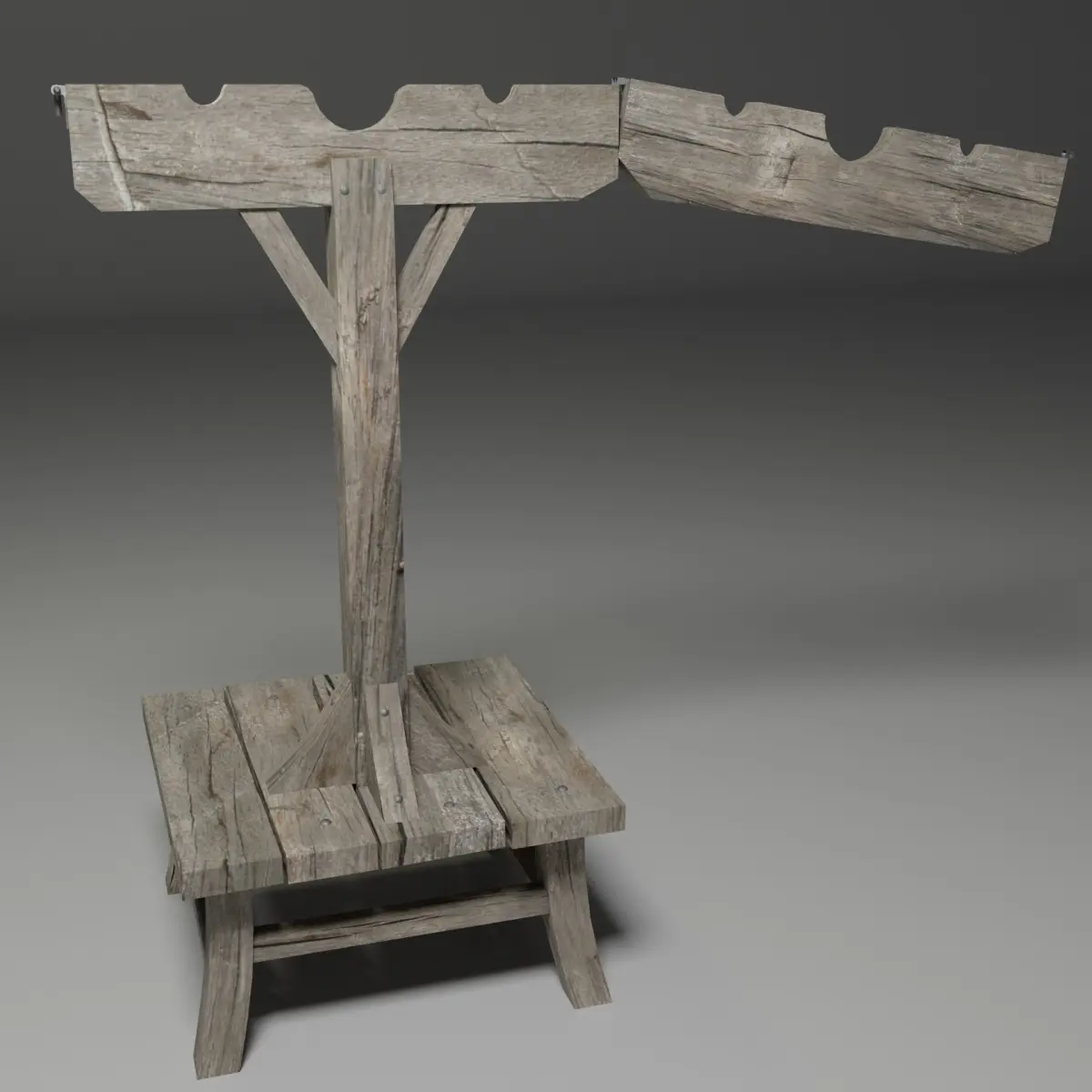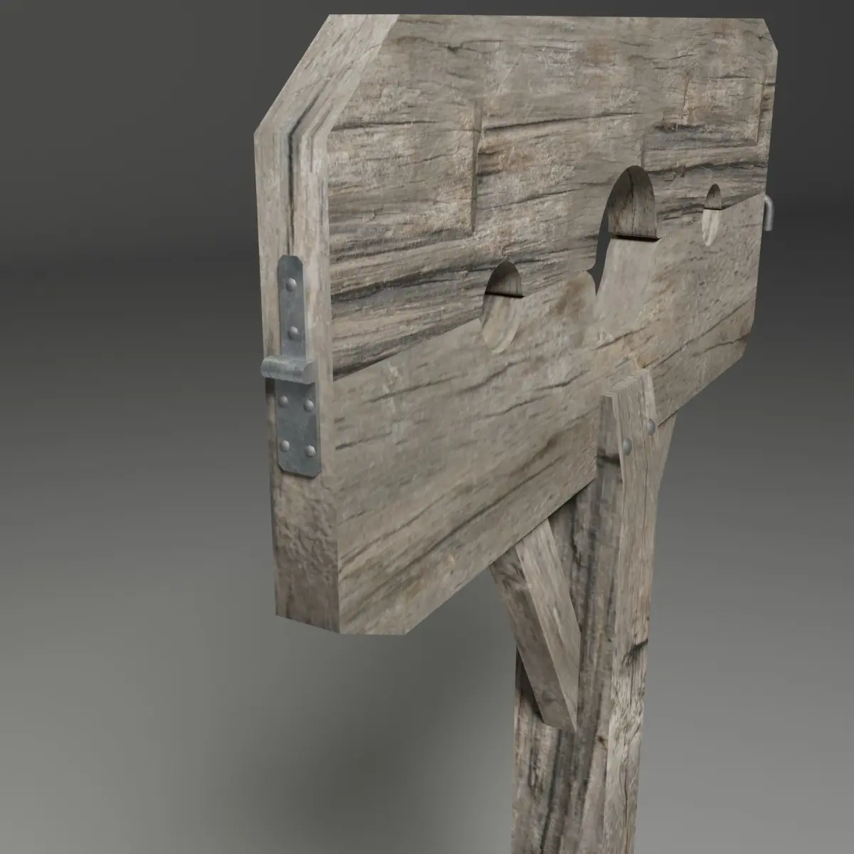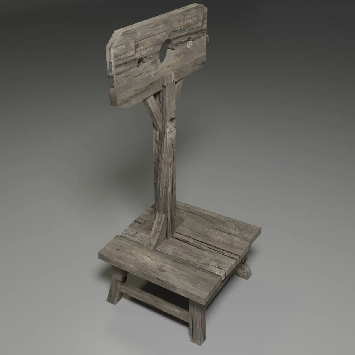Game ready medieval style pillory low poly model. Realistic model of a medieval pillory with 2k PBR textures (diffuse, roughness, metalness and normal maps).