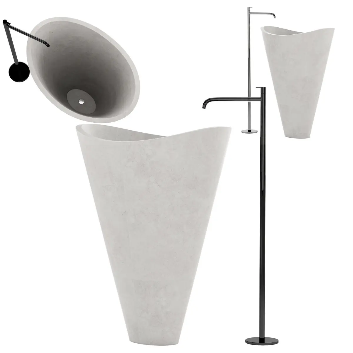 In the fluid forms of stone design, the material rediscovers, and strengthens, the ancient bond with water, through symbolic-sensorial harmonies, in which the body dimension of the user (human) regains direct contact with the primitive elements of its origins, involving it in enveloping, soft and sinuous shapes that highlight the contrast between the essentiality of the mass and the complexity of the void, playing with light in a range of half-shadows and shadows that broaden the dynamics of perception.The lithic material (Lecce stone) in the bathroom furniture elements of the Libeccio collection finds a privileged application, unfolding its qualities across the board, visually, but also tactile, auditory and olfactory.