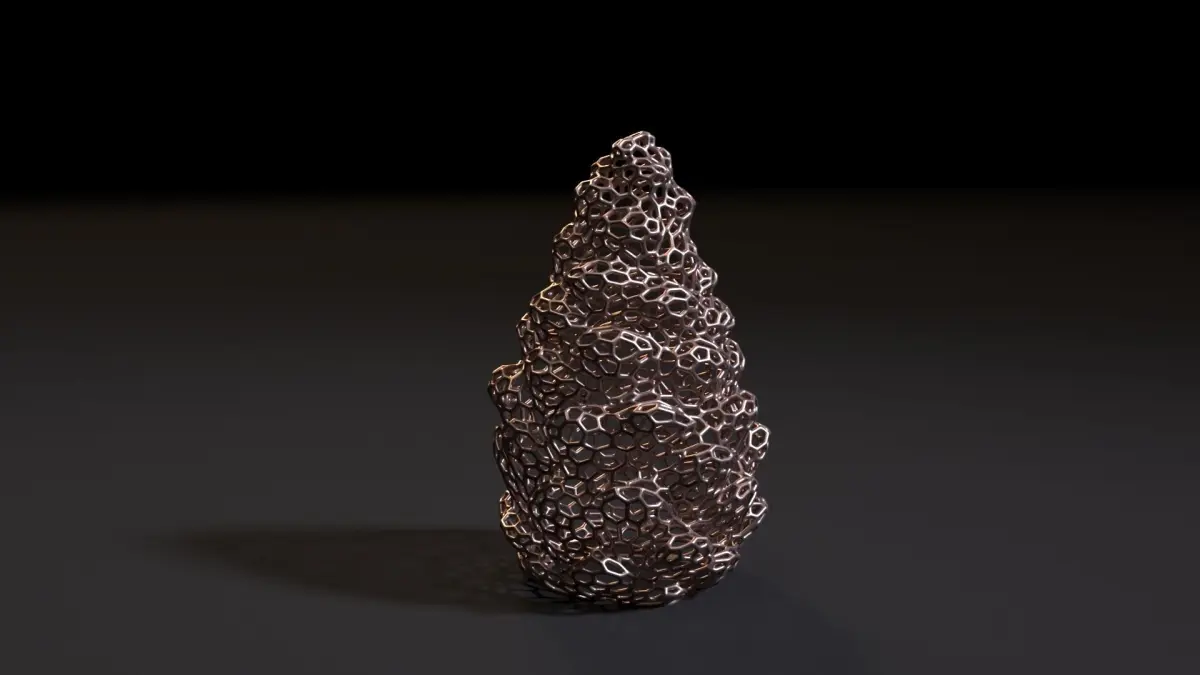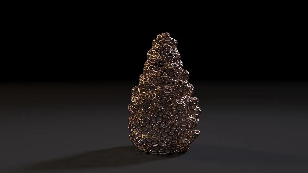 Pine cone voronoi. A beautiful decorative element in the form of a pine cone. Great decoration for your home or office interior. Inside you can place an electric lamp or an LED garland, then you get an unusual lamp. You can print several of these lamps and make a very cozy Christmas decor.
