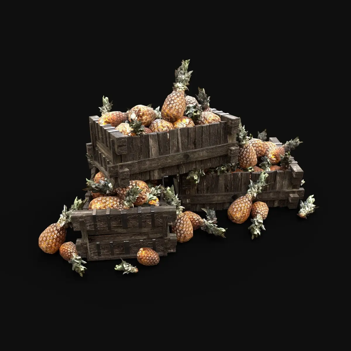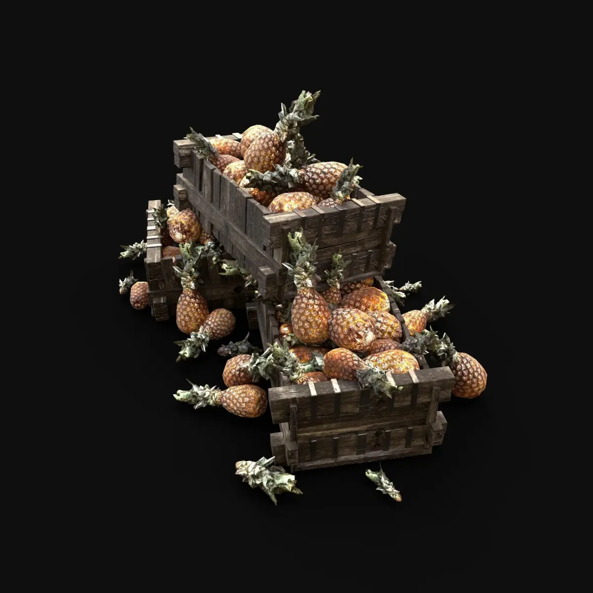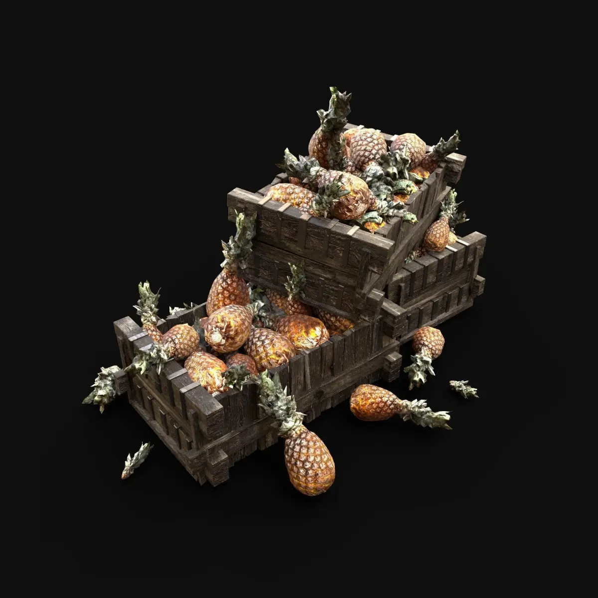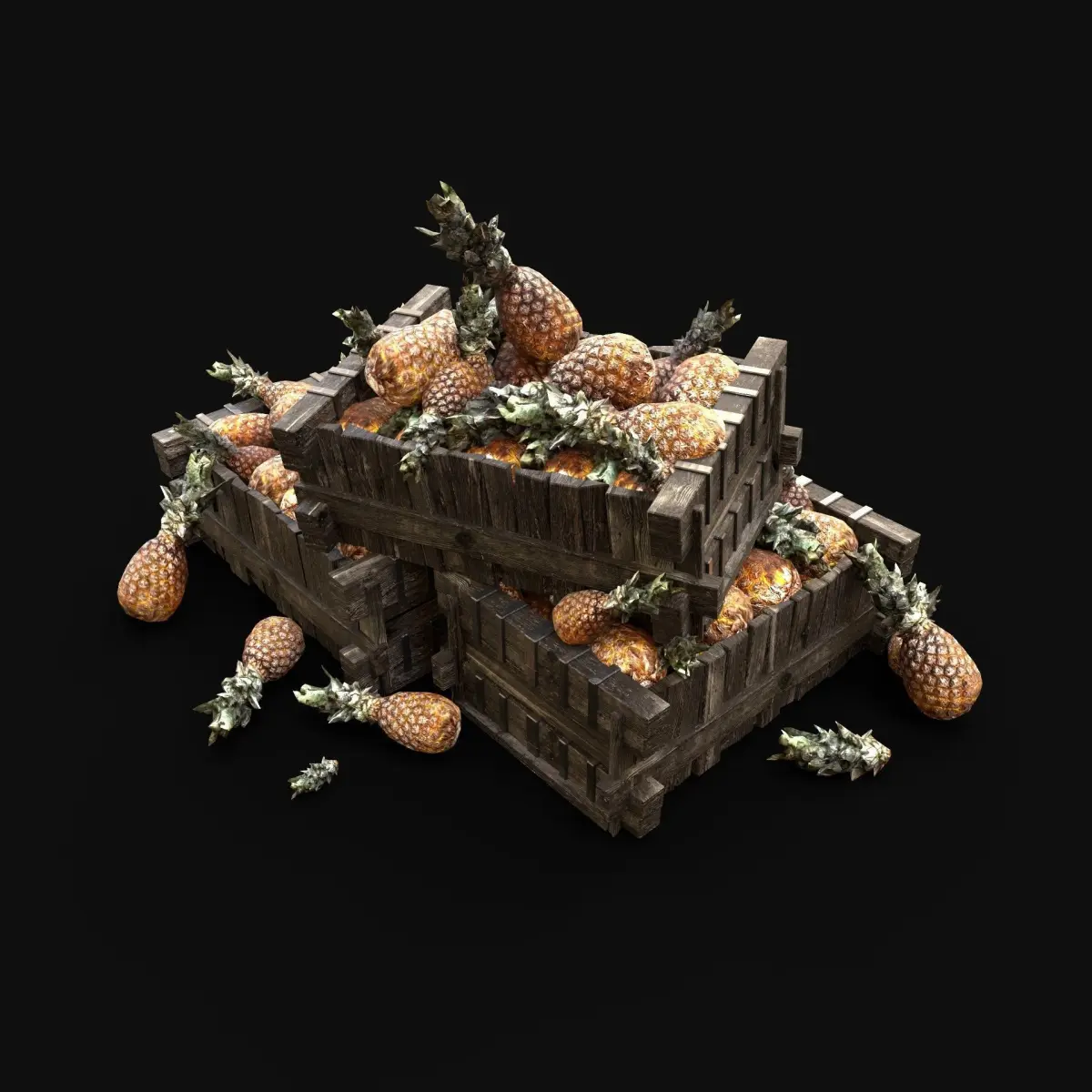 - Next gen, AAA quality, game-ready model of pineapple box pile.