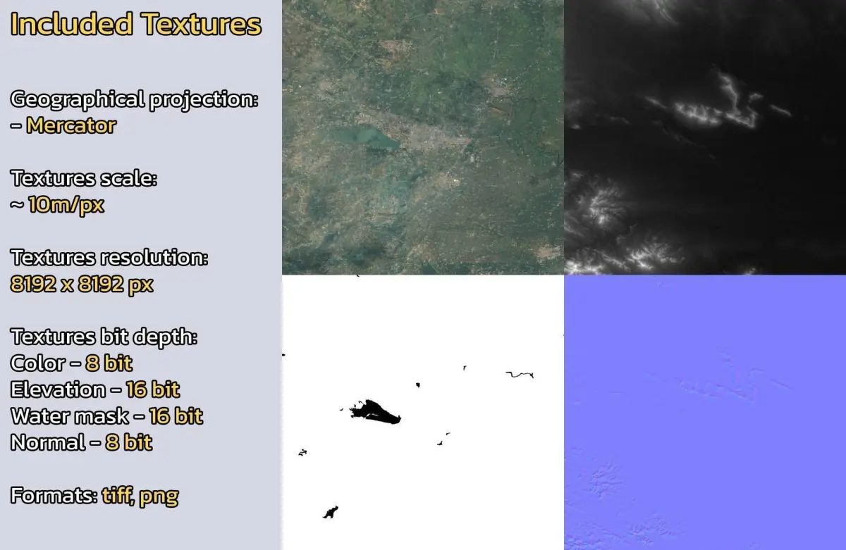 Warning: minor clouds/artifacts may be present on the diffuse color satellite texture due to the nature of the dataset. Check product images.