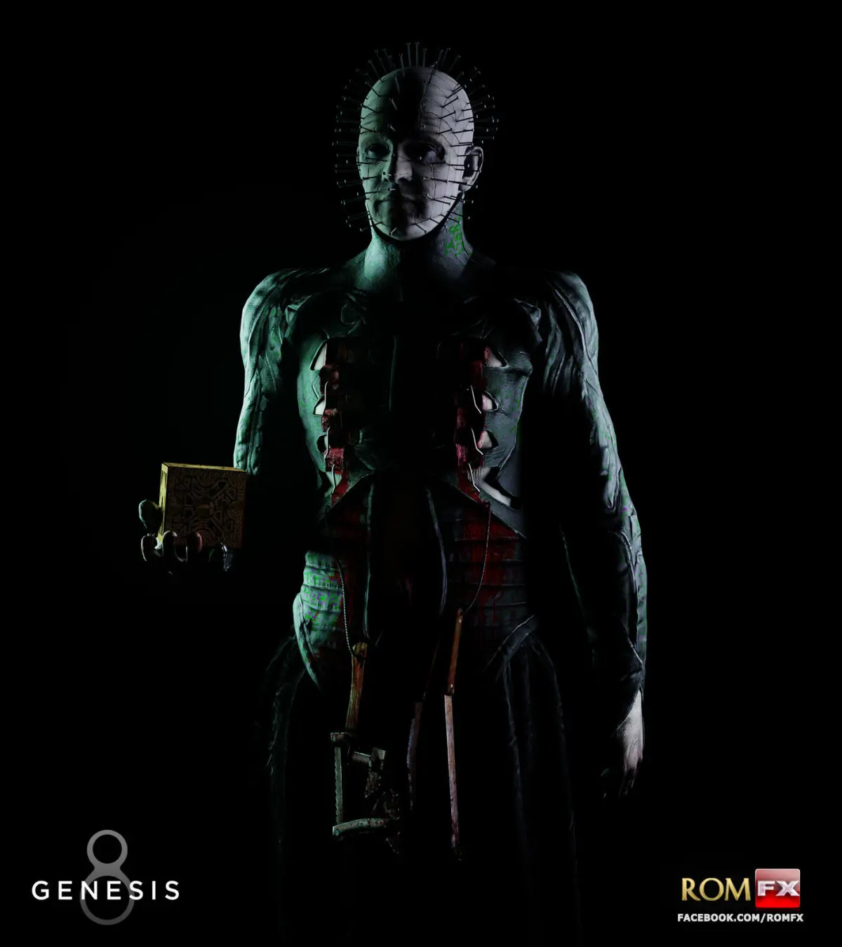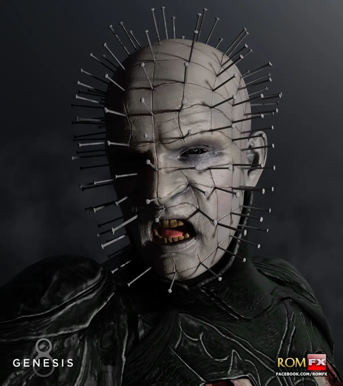 From the classic horror film series HELLRAISER, Pinhead is one of the leaders of the Cenobites, formerly humans, but who have been turned into demons that belong to a very particular group in Hell. They vary greatly in appearance, owing to the various mutilations and modifications that have taken place in their bodies. These beings enter Earth through a puzzle box in order to harvest and torture human souls.