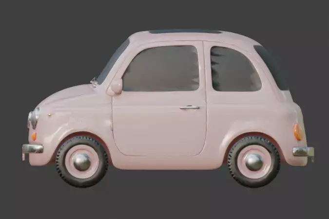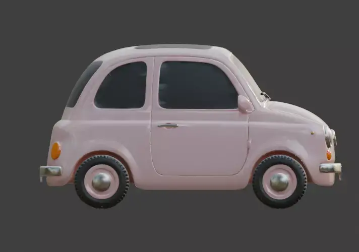 This is a high quality stylized 3D model of a classic car with a charming pink finish. The design features smooth, rounded geometry and a friendly cartoon aesthetic, perfect for games, animations, or toy visualizations. It includes black tinted windows with no interior visible for optimized performance.