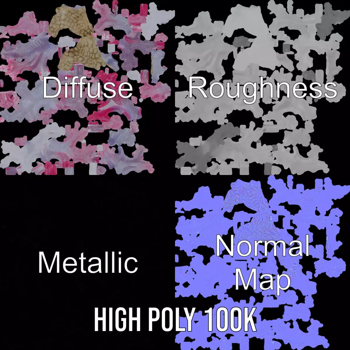 The model's textures are PBR, Diffuse, NormalMap, and reflection/roughness/metallic, suitable for any modern rendering engine. All models are accurately unwrapped and have no overlapping UVs. All textures are 4096x4096 in size.