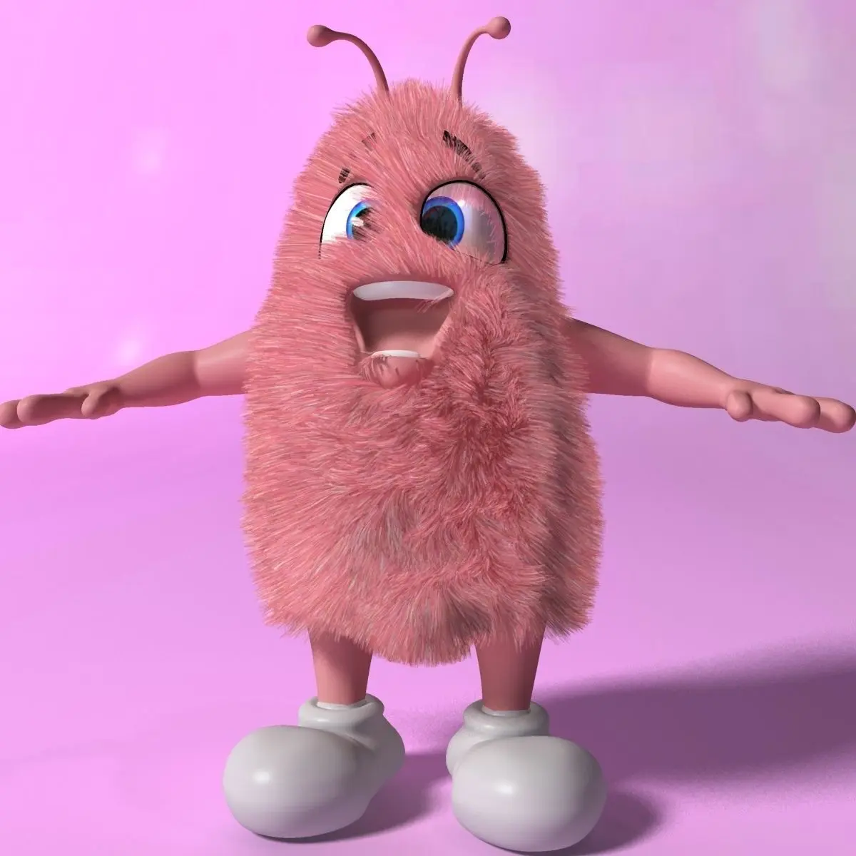 Low Poly of a Cartoon Pink Creature made with 3D Studio Max 8