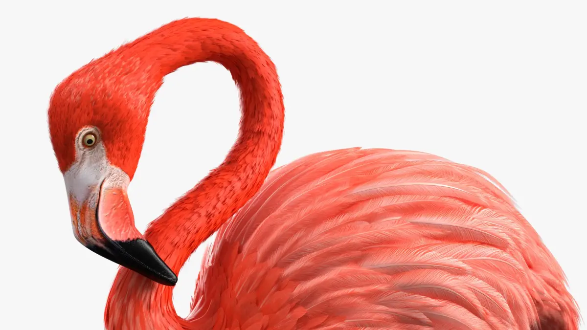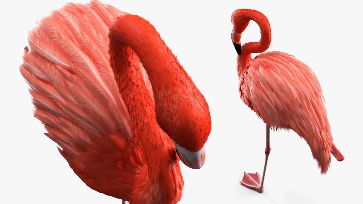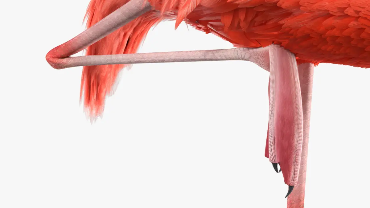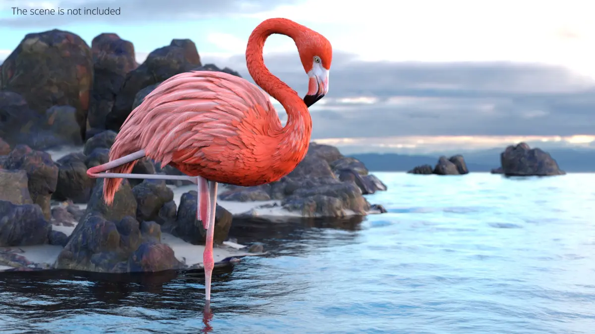 Pink Flamingo Bird in One Leg Pose is a three-dimensional model of large wading bird, that is a distinctive species recognized for its pink plumage and long legs.