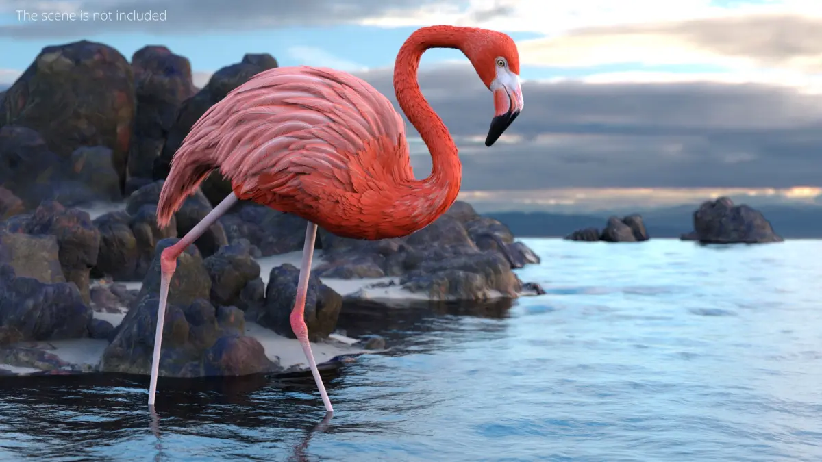 Pink Flamingo Bird in Walking Pose is a three-dimensional model of large wading bird, that is a distinctive species recognized for its pink plumage and long legs.