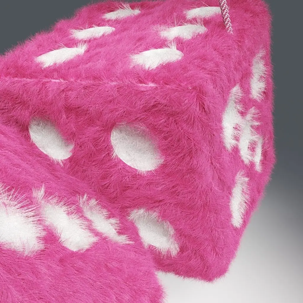 A 3D high-poly model of some furry dice which you would commonly hang off your mirror. V-Ray fur mod has been used in conjunction with displacement map. All maps/texture are included along with VRay Fur settings.
