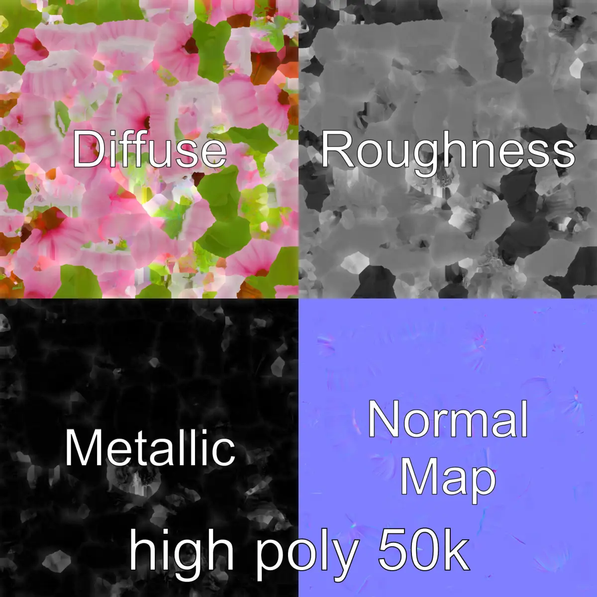 Each model has 3 levels of detail: low-poly, middle-poly, and high-poly, which allows for the use of this model in production rendering (such as 3ds Max, Maya, Cinema4D, Blender, Vray/Corona/Cycles and all others), game engines (Unity and Unreal compatible), and interactive presentations, providing a choice of detail based on the LOD System principle. Perfect for creating realistic natural environments, botanical gardens, or floral arrangements in digital art and game scenes. The model's textures are PBR, Diffuse, NormalMap, and reflection/roughness/metallic, which are suitable for any modern rendering engine. All models accurately unwrapped and have no overlapping UV. All textures are 4096*4096 in size. If you liked the model, please like and leave a comment.