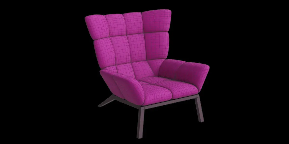 This model is a big pink armchairIt's suitable for retro, cyberpunk, future next gen style roomsThe file consists of blend file format with 4k resolution baked textures:_ Base color_ Metalness_ Roughness_ Normal
