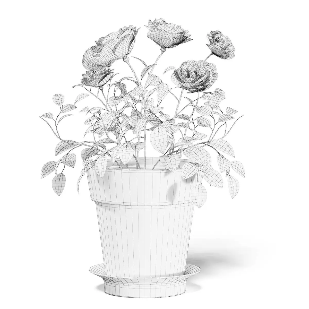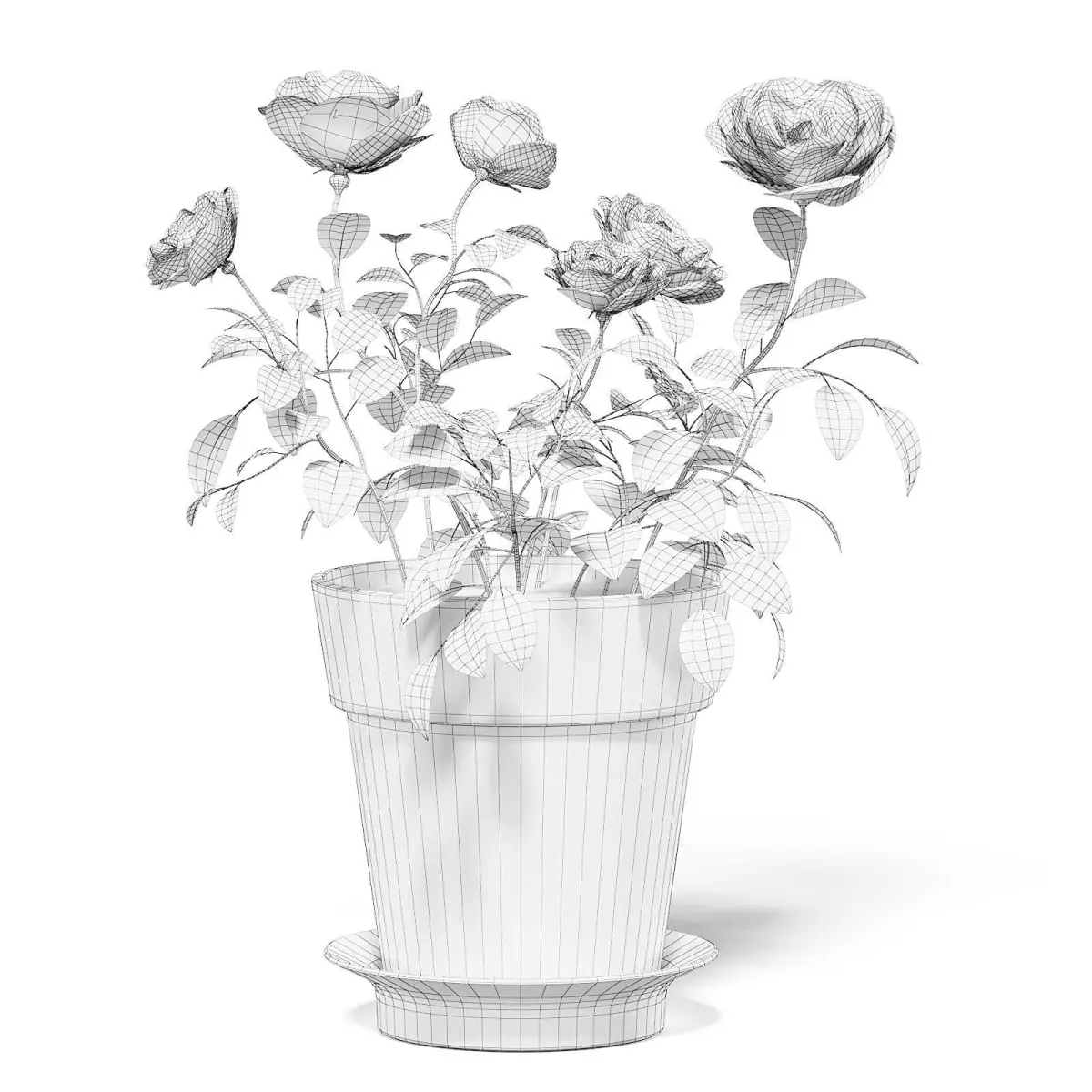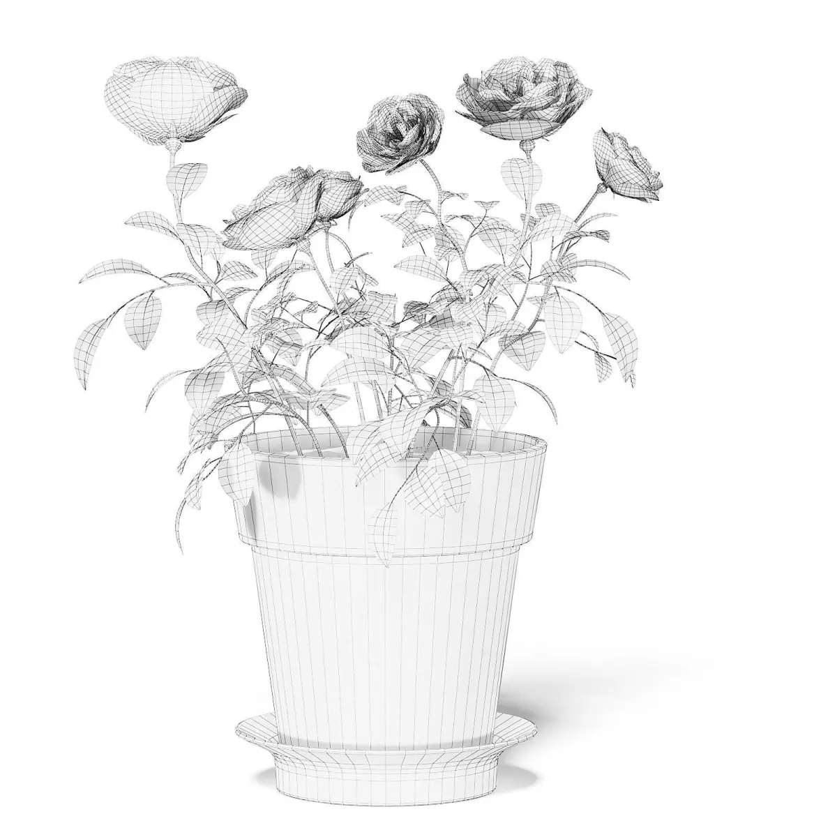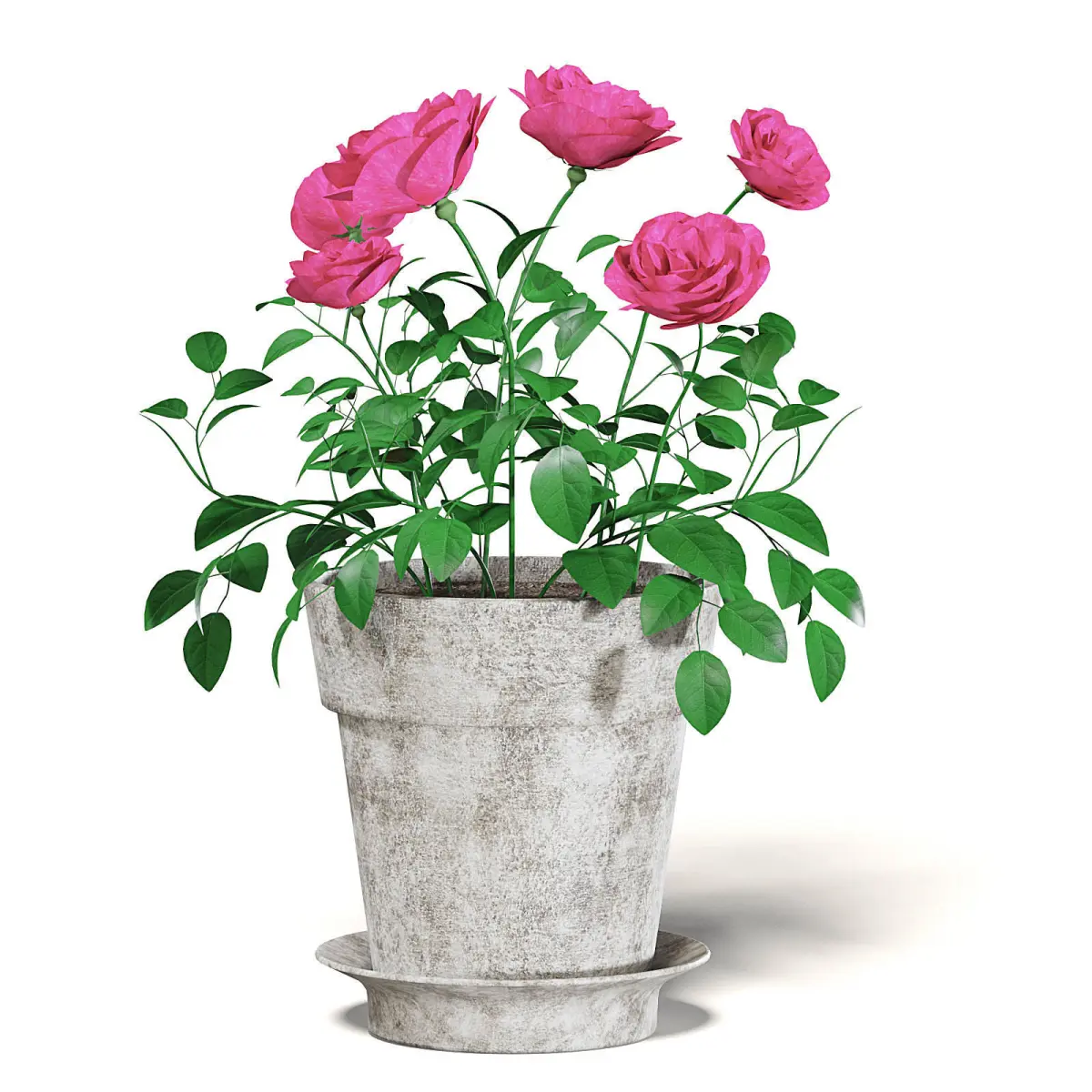 Pink roses 3d model in old ceramic pot. Compatible with 3ds max 2010 (V-Ray, Mental Ray, Corona) or higher, Cinema 4D R15 (V-Ray, Advanced Renderer), Unreal Engine, FBX and OBJ.