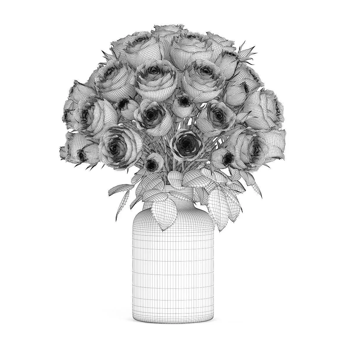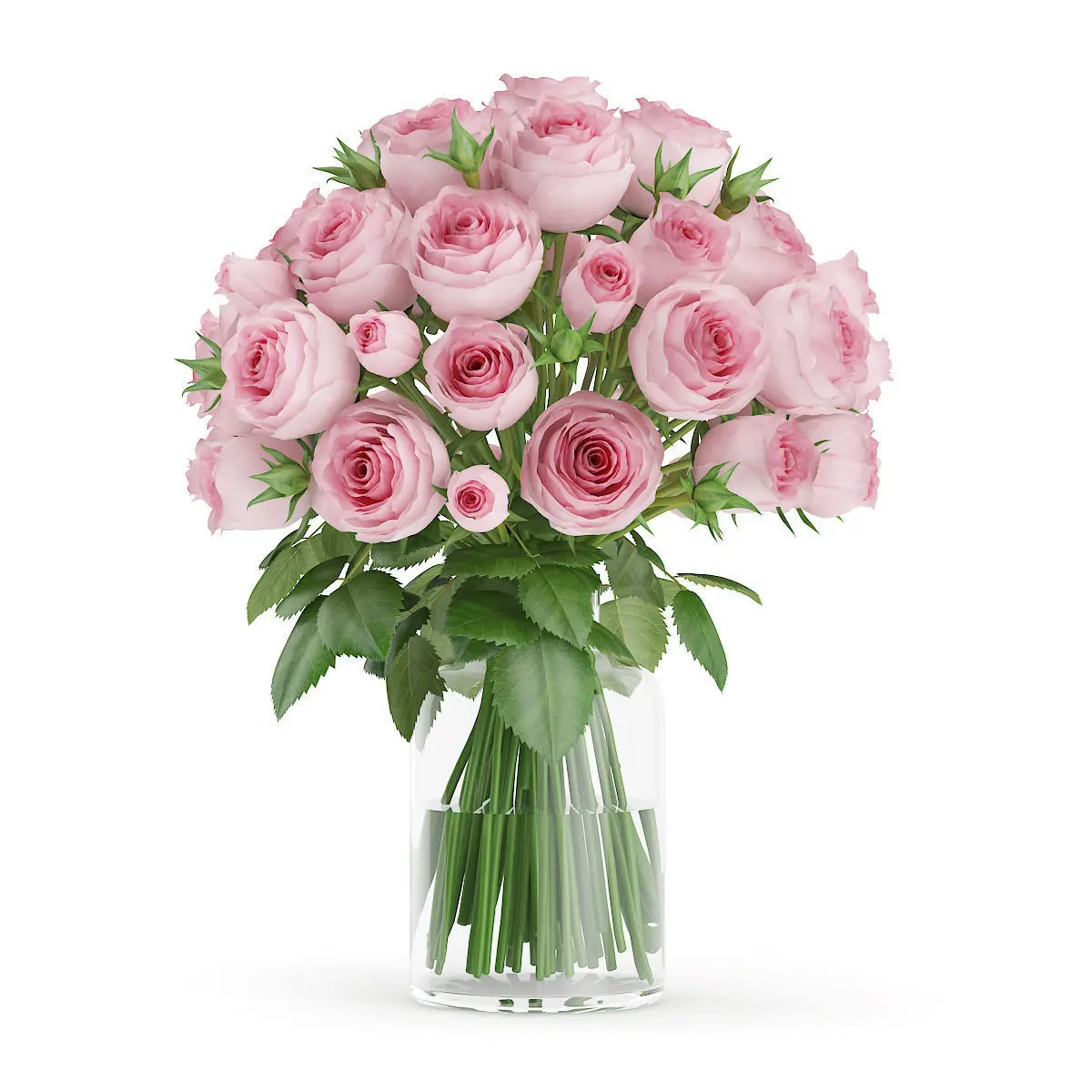 Pink Roses in Glass Vase 3D model