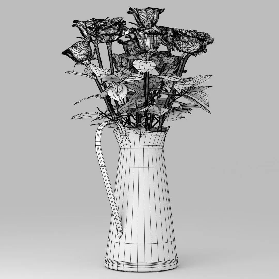 Detailed model of a bouquet of pink roses in a old Pitcher.
