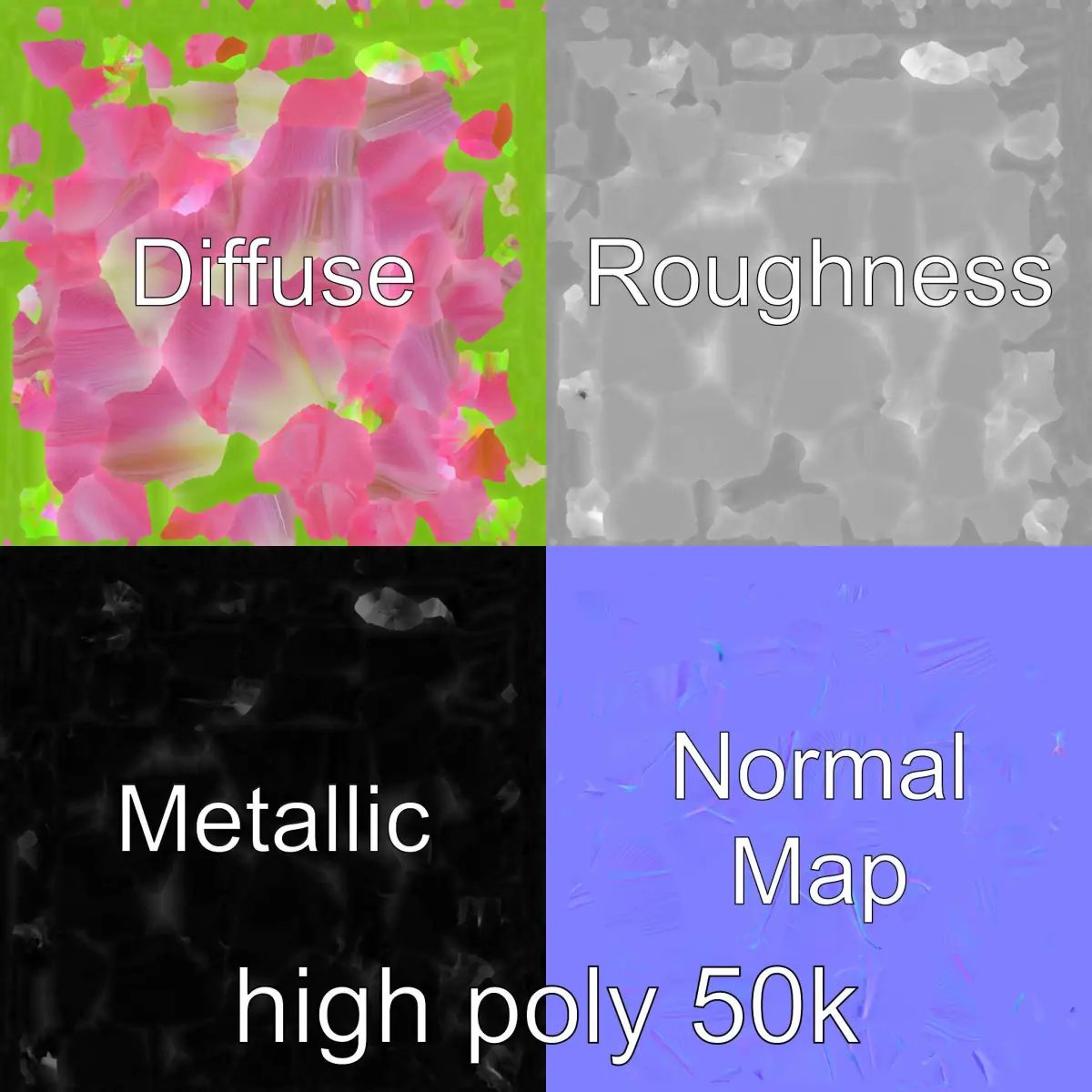 Each model has 3 levels of detail: low-poly, middle-poly, and high-poly, allowing for versatile use in production rendering, game engines, and interactive presentations with a choice of detail based on the LOD System principle. Perfect for scenes requiring natural elegance, the model is ideal for botanical visualizations, educational materials, or as decorative elements in virtual environments. The model's textures include PBR, Diffuse, NormalMap, and reflection/roughness/metallic, compatible with any modern rendering engine. All models are accurately unwrapped with no overlapping UVs. All textures are 4096x4096 in size. If you enjoyed this model, please like and leave a comment!