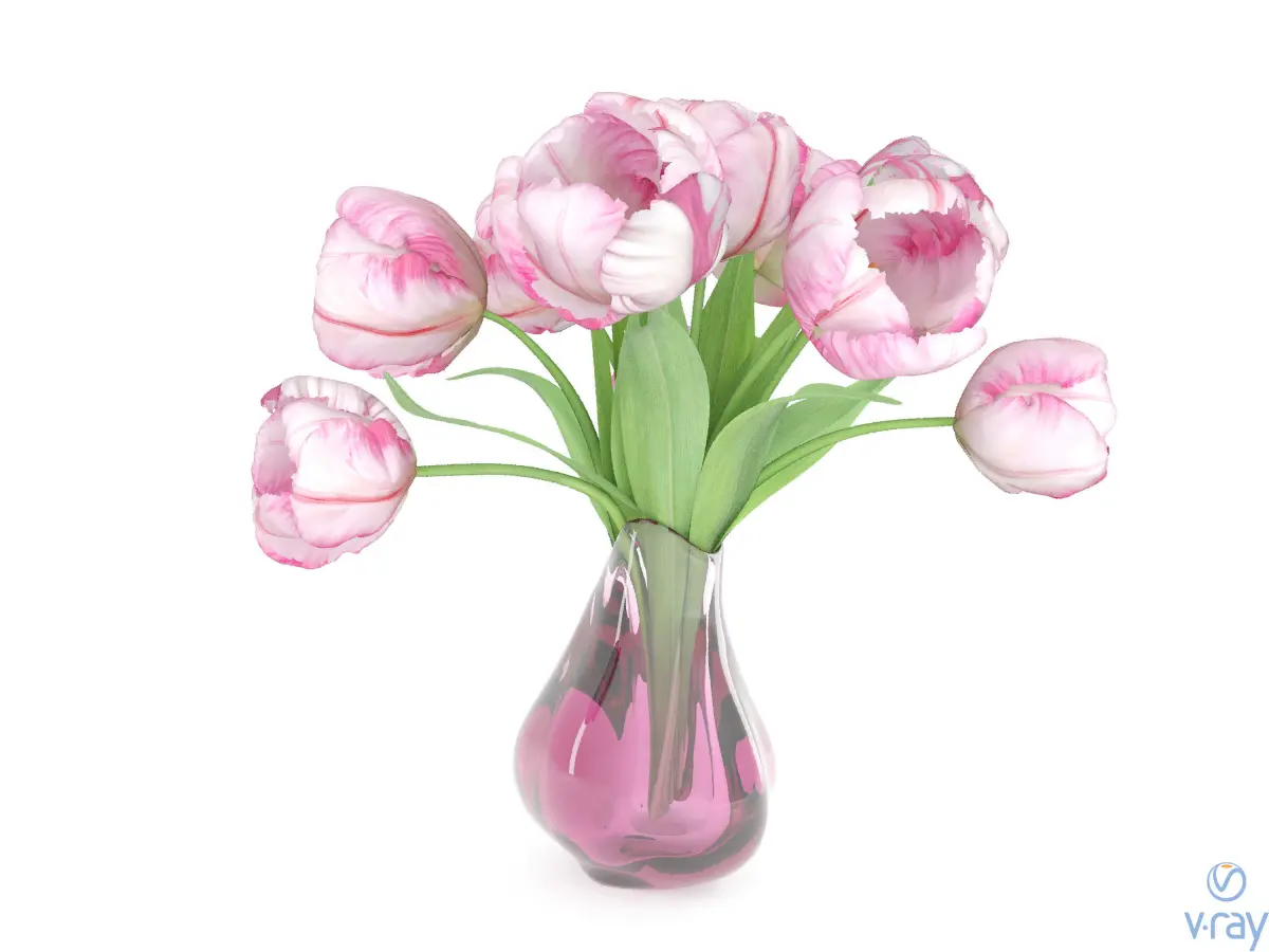 The files contain only the model of the flowers in the vase with materials prepared for Corona and V-ray renderers, no other models, lights or render settings are present in the files.