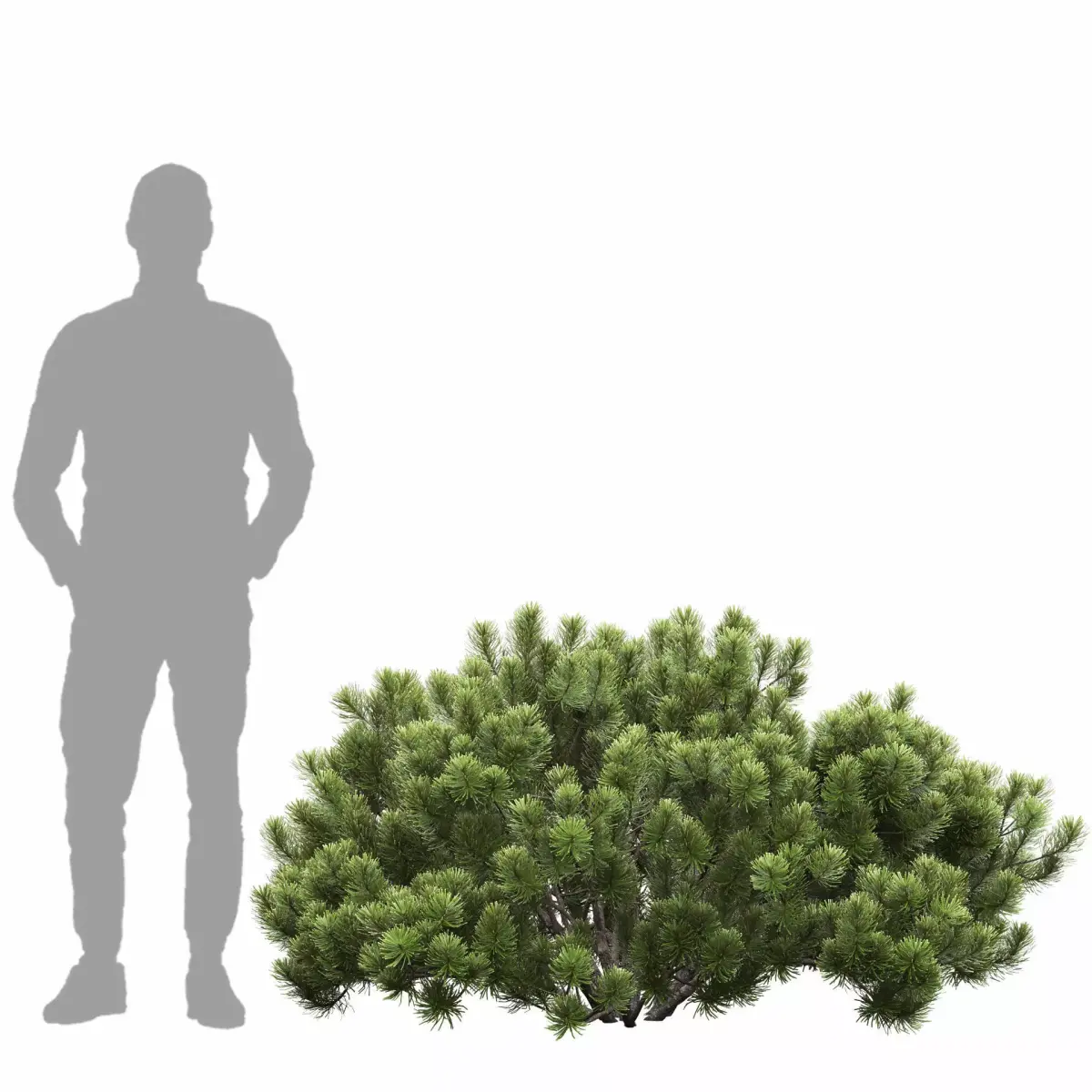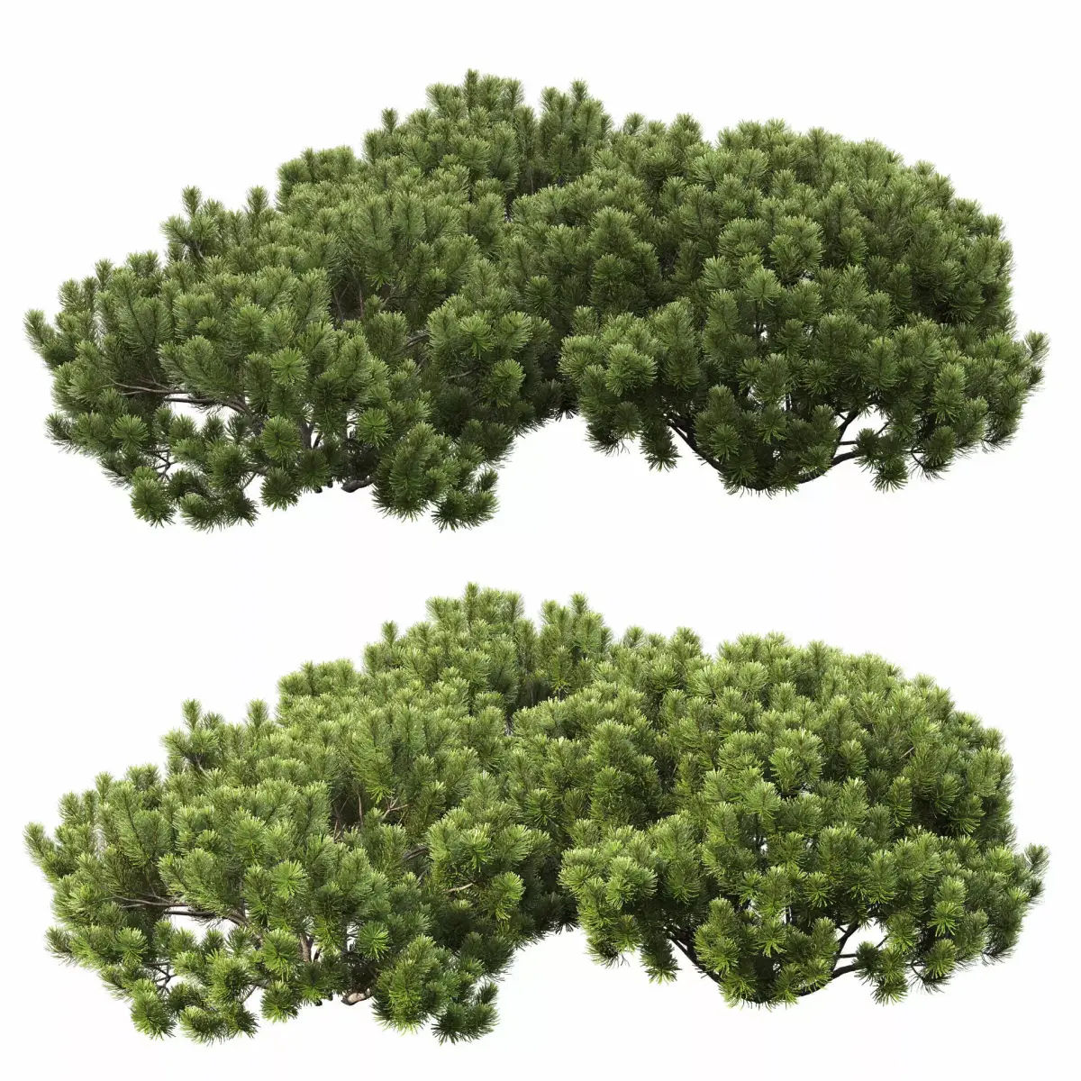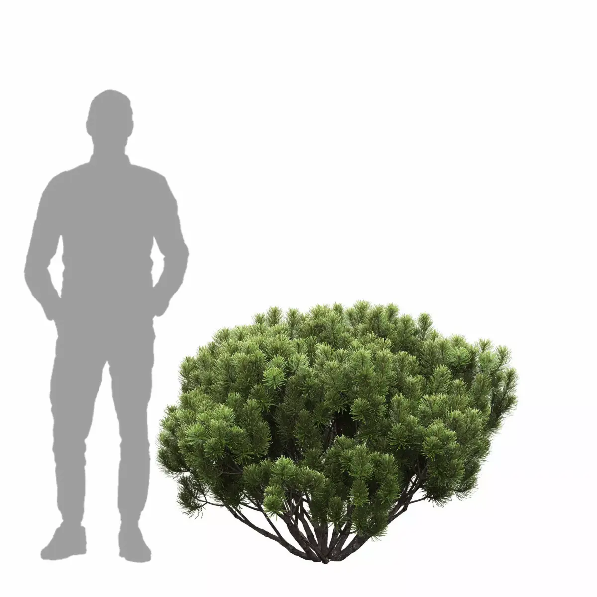 The scene contains three dwarf pine models.The needles are geometric.