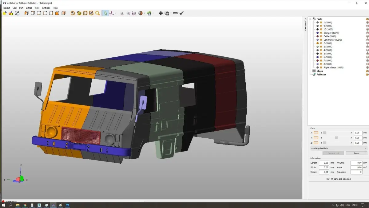 Model on a scale of 1: 8 to 1:12; The body model is divided into 10 parts;grill and bumper separately. On a scale of 1:18 to 1:25 the model is divided into 5 parts