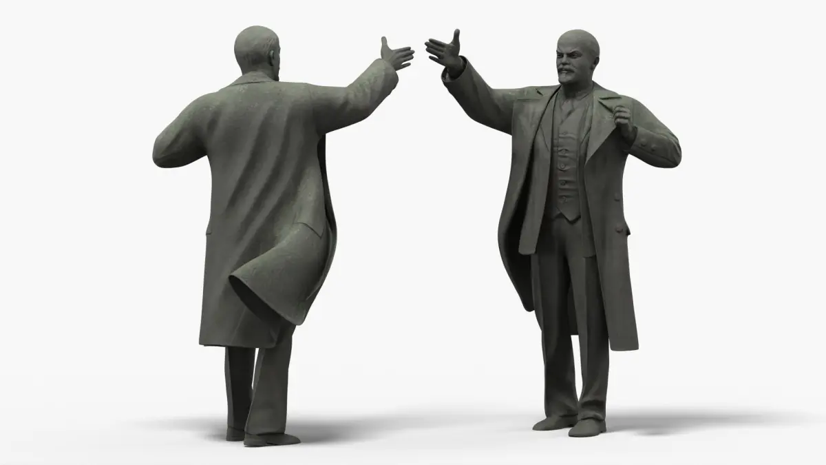 Pioneer Boy near Vladimir Lenin Statue Collection is a set of three-dimensional models of a symbolic Soviet-era scene, featuring a young pioneer boy in uniform standing beside a statue of Vladimir Lenin.
