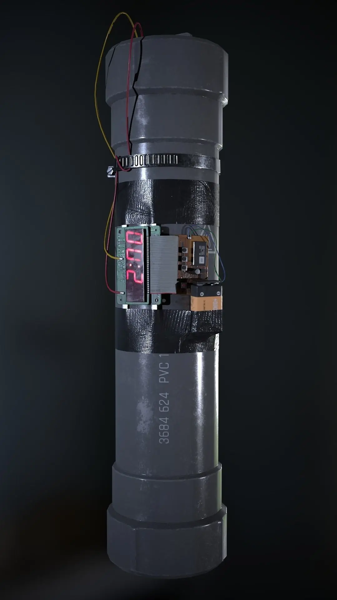 Don’t forget to set the timer correctly, it detonates in seconds not minutes! This makeshift pipe bomb is fully PBR textured (4096x4096). Highpoly mesh is included in the Maya sourcefile.