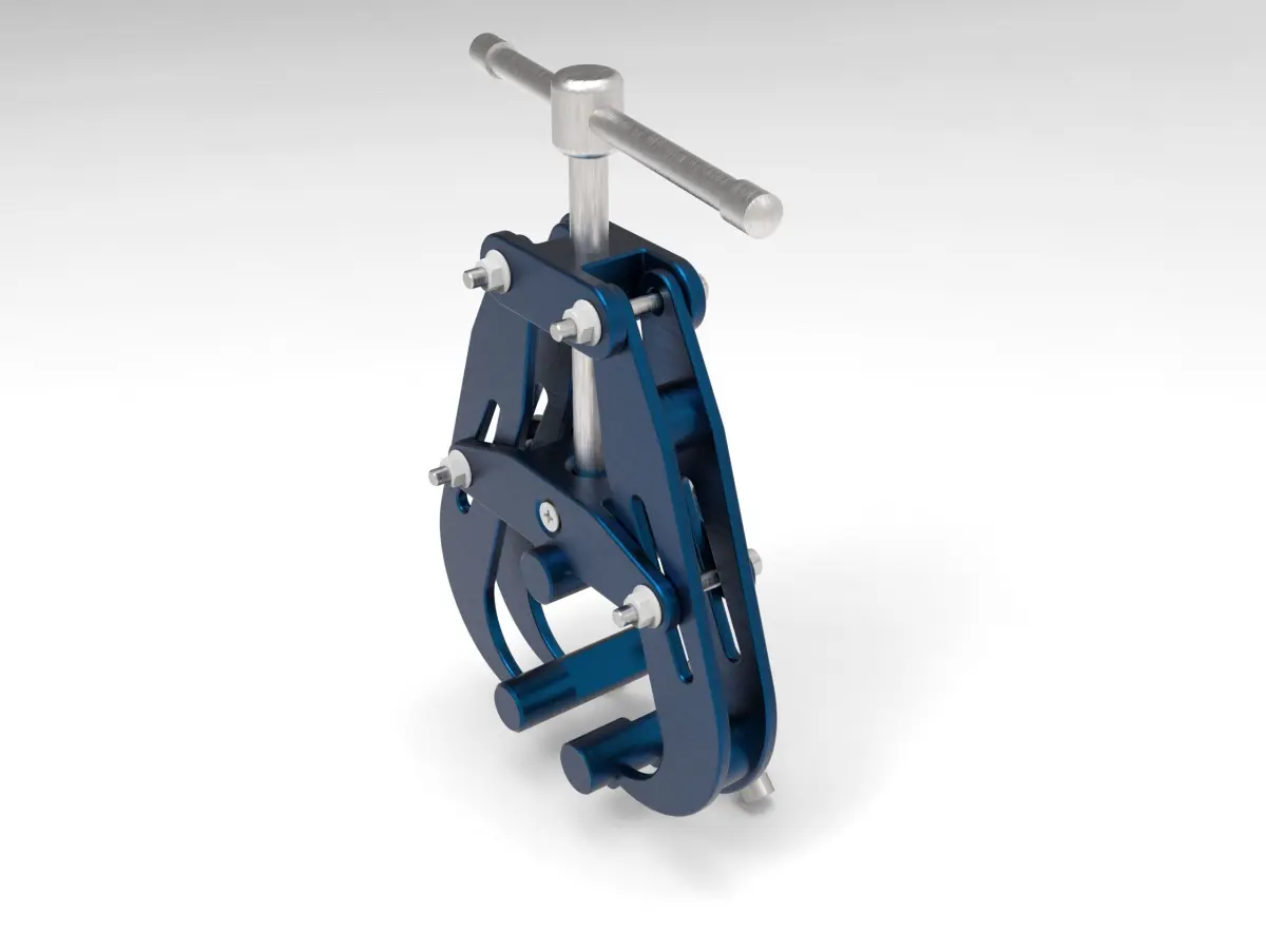 Industrial clamp consisting of different parts with standard bolt and nut dimensions.