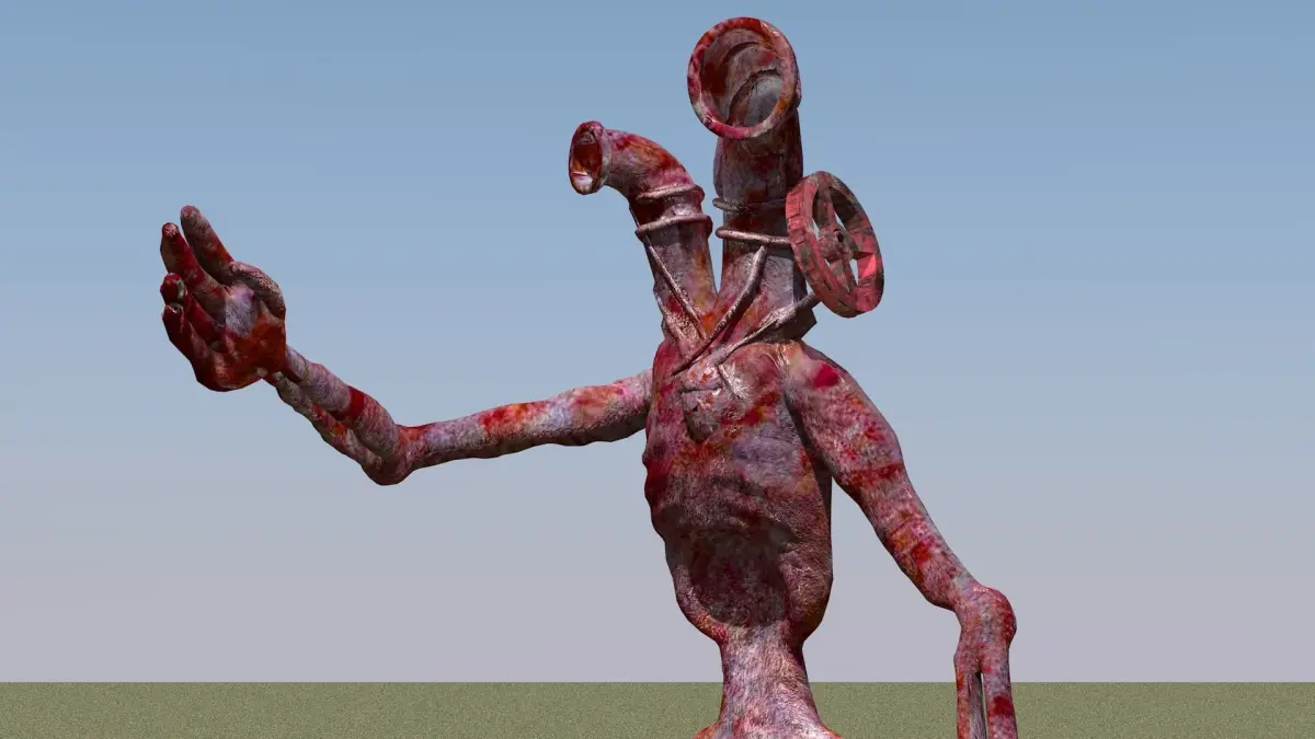 This is a scary pipe head character. The monster has low polygon geometry and a game texture set.