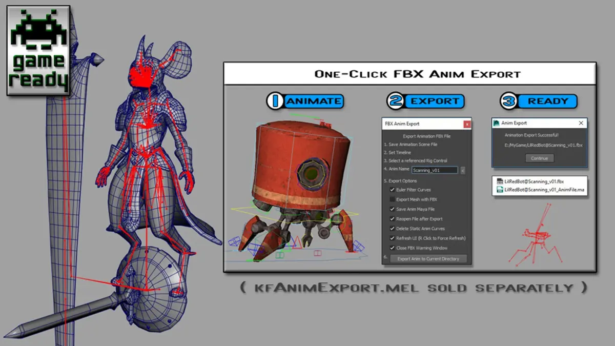 -Easy export to FBX sold separately (search for kfAnimExport.mel)