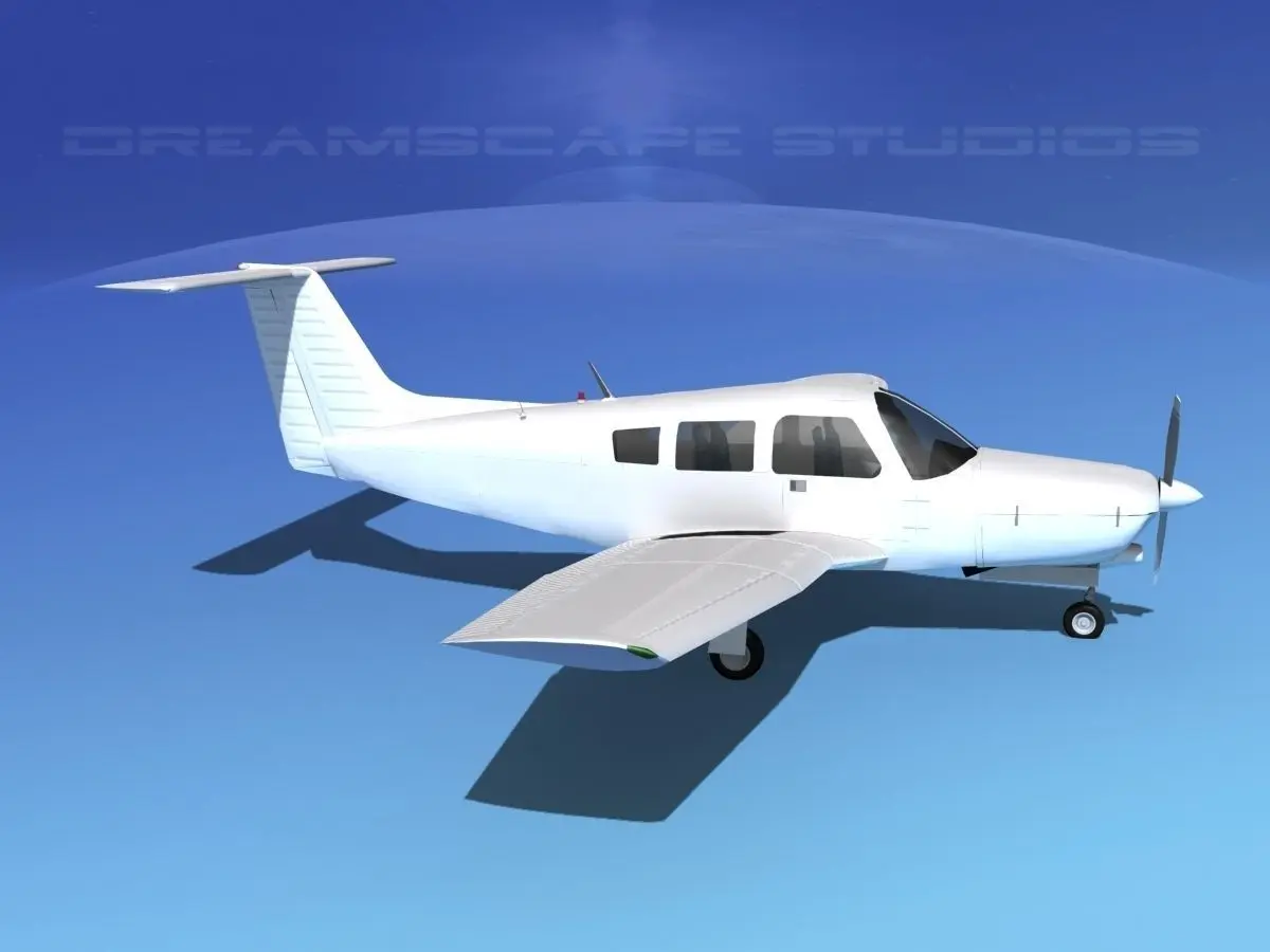 This model is near to scale. It was built within a few inches of actual general dimensions. It has animatable ailerons, flaps, stabulator, rudder and propeller. The cockpit includes a fairly detailed instrument panel with some of the controls and instruments. It also has 4 seats in the cabin. The landing gear can be retracted or extended for animation.