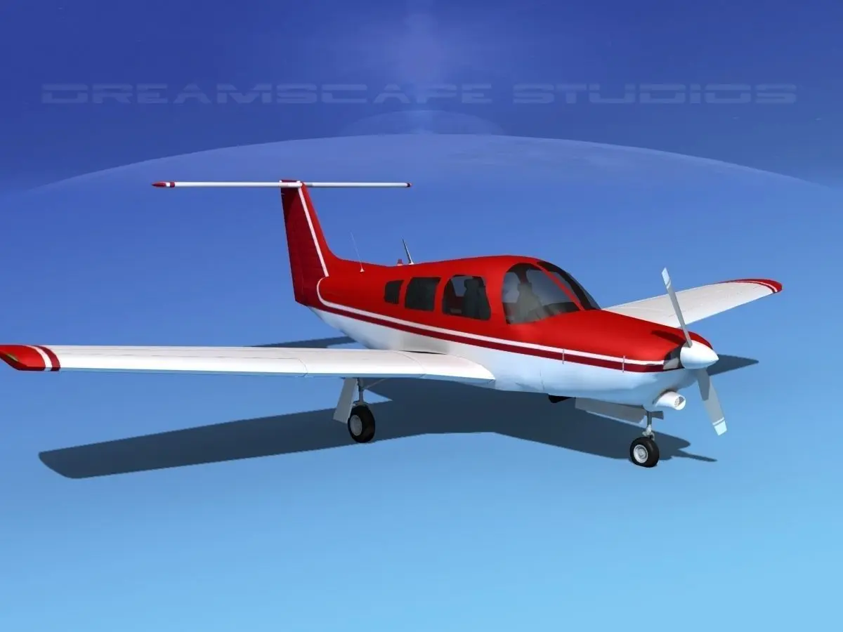 This model is near to scale. It was built within a few inches of actual general dimensions. It has animatable ailerons, flaps, stabulator, rudder and propeller. The cockpit includes a fairly detailed instrument panel with some of the controls and instruments. It also has 4 seats in the cabin. The landing gear can be retracted or extended for animation.