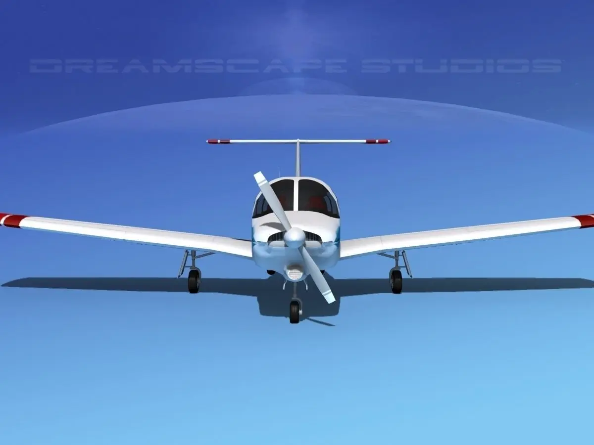 This model is near to scale. It was built within a few inches of actual general dimensions. It has animatable ailerons, flaps, stabulator, rudder and propeller. The cockpit includes a fairly detailed instrument panel with some of the controls and instruments. It also has 4 seats in the cabin. The landing gear can be retracted or extended for animation.