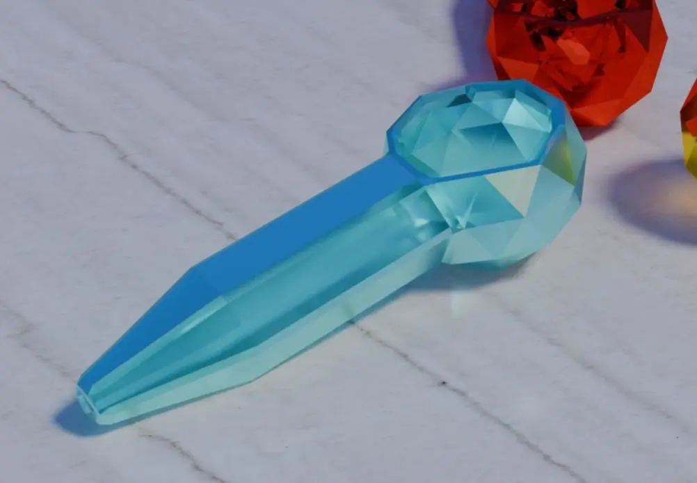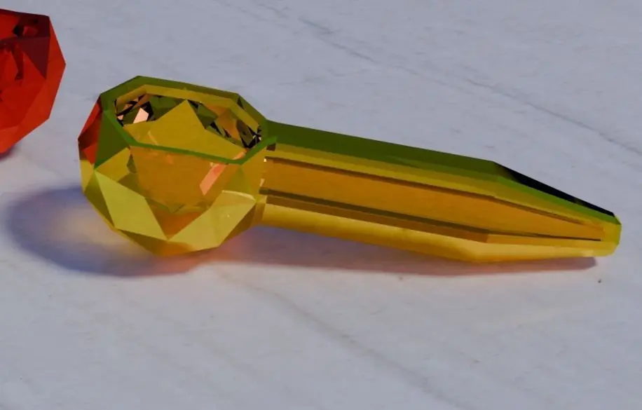 Glass design of a pipe for smoking herbs.