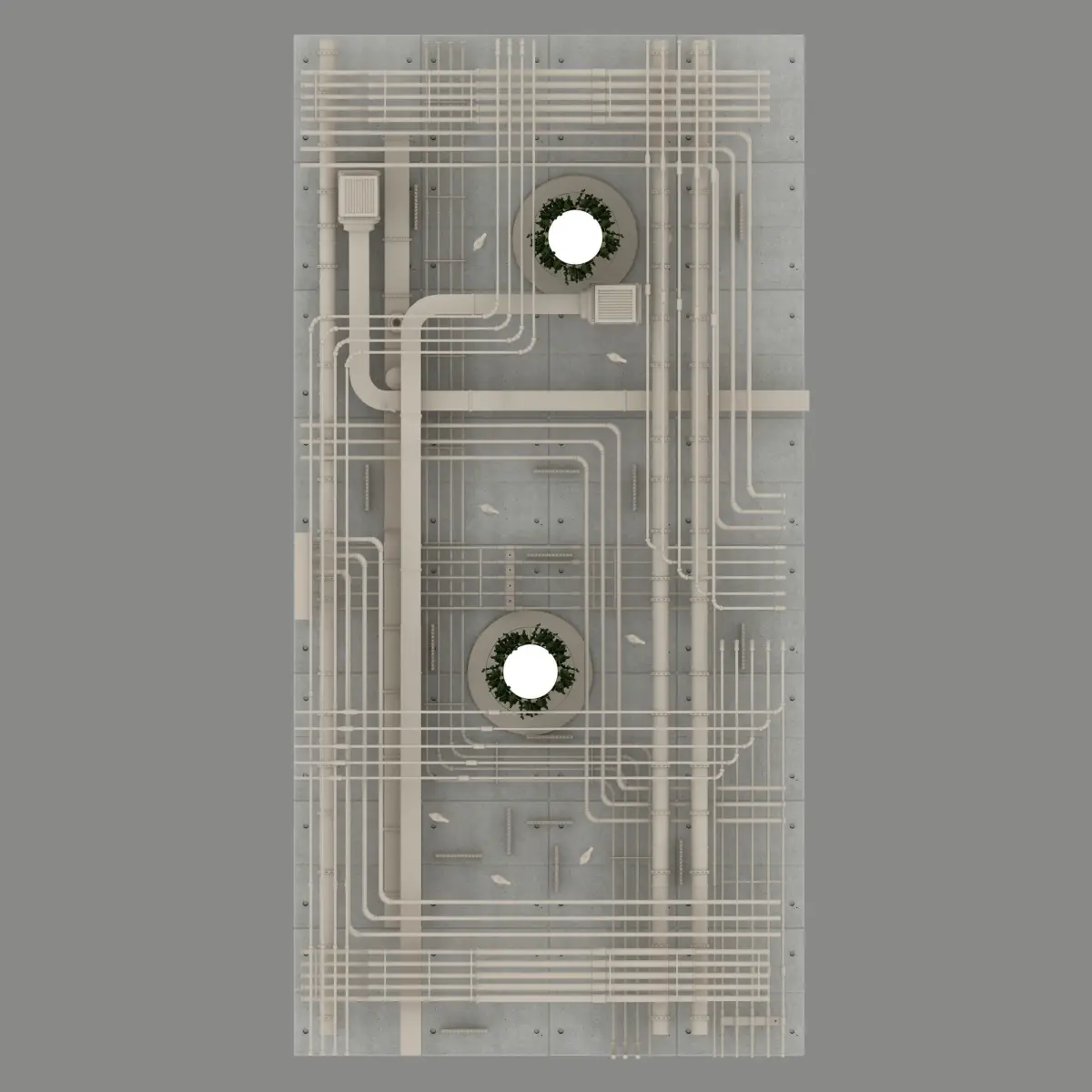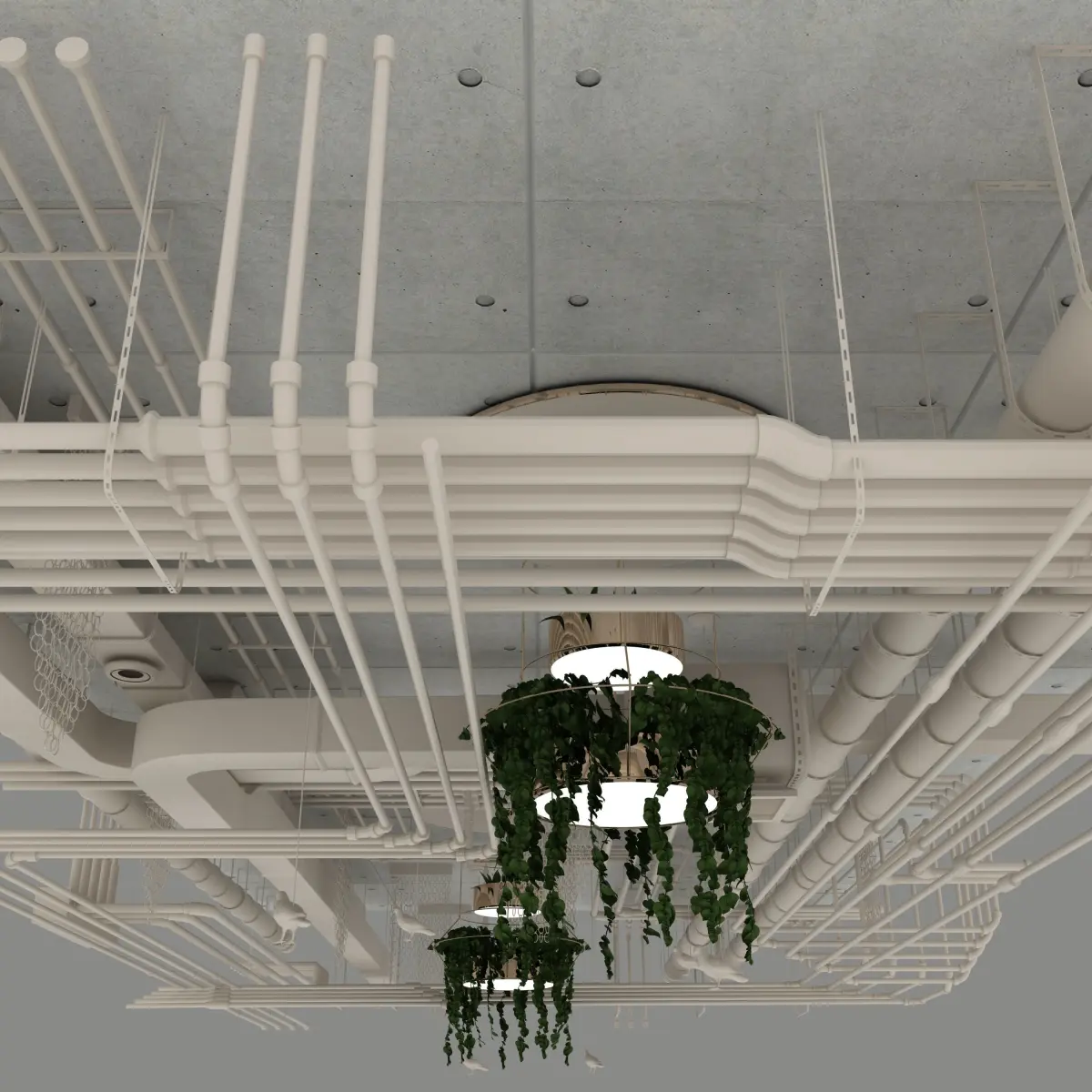 Pipes industrial ceiling with plants chandelier 3D model