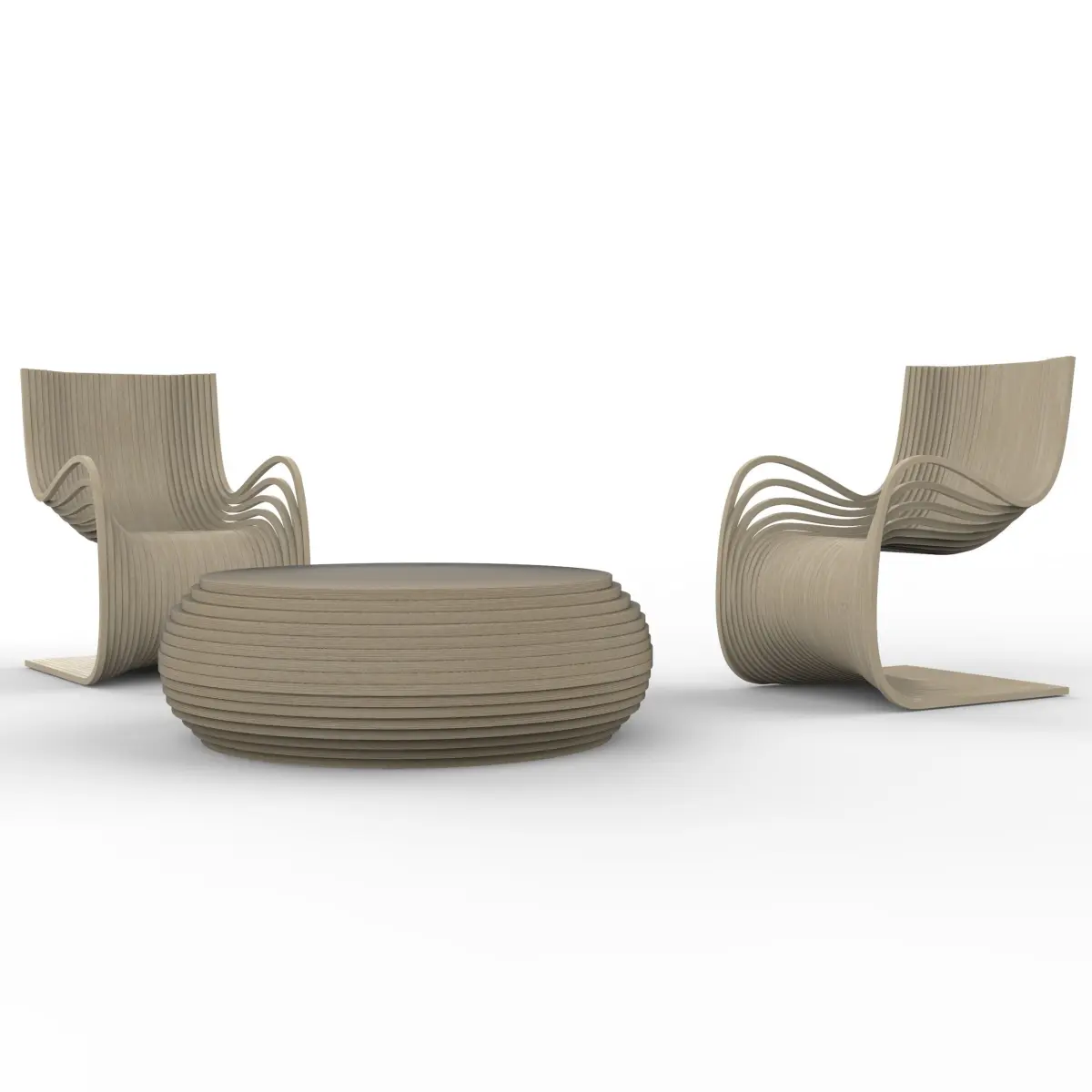 Model is useful for AR, VR or architectural renderings. All geometry of the model is optimized to give you highest possible quality for renders. This model is accurately sized to match the real object.Chair: H80cm x W75 cm x D65cmPolygons: 143616Vert: 243680Table: H38.5cm x W117cm