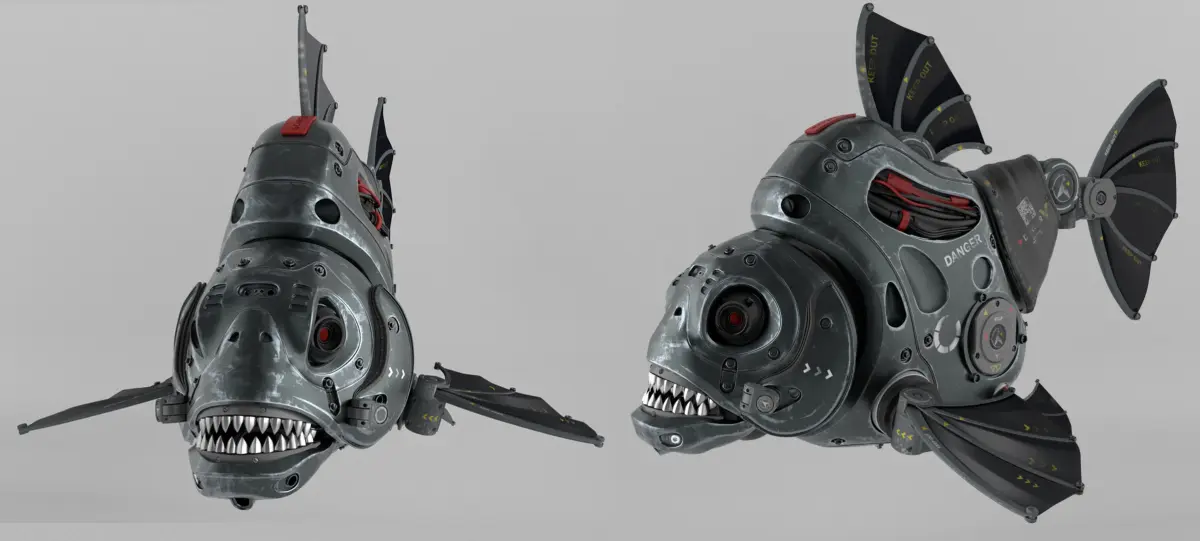 piranha robot is a Cyborg fish , High-quality polygonal model , detailed for close up renders as well. Model piranha robot created in Maya 2018 and rendered in Maya 2018 with Arnold and keyshot, he's proper geometry and UV textured and smooth enabled. -obj -fbx texture included -mb ( Maya format ) -bip (keyshot format in archiv RAR ) Archiv ZIP with texture